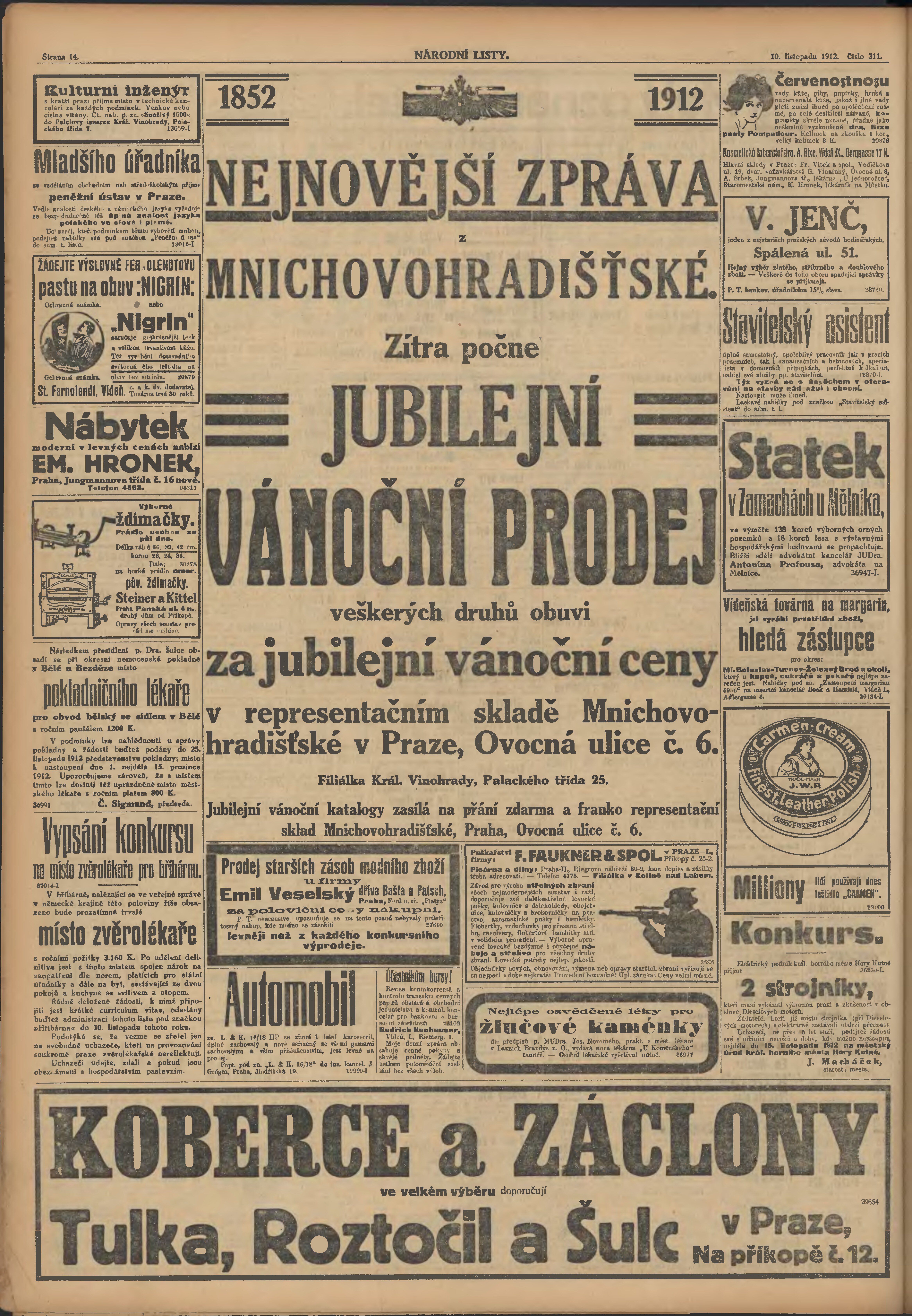 * Datum vydání výtisku: 10.11.1912 Číslo výtisku: 311 Poznámky k výtisku: ranní vydání;