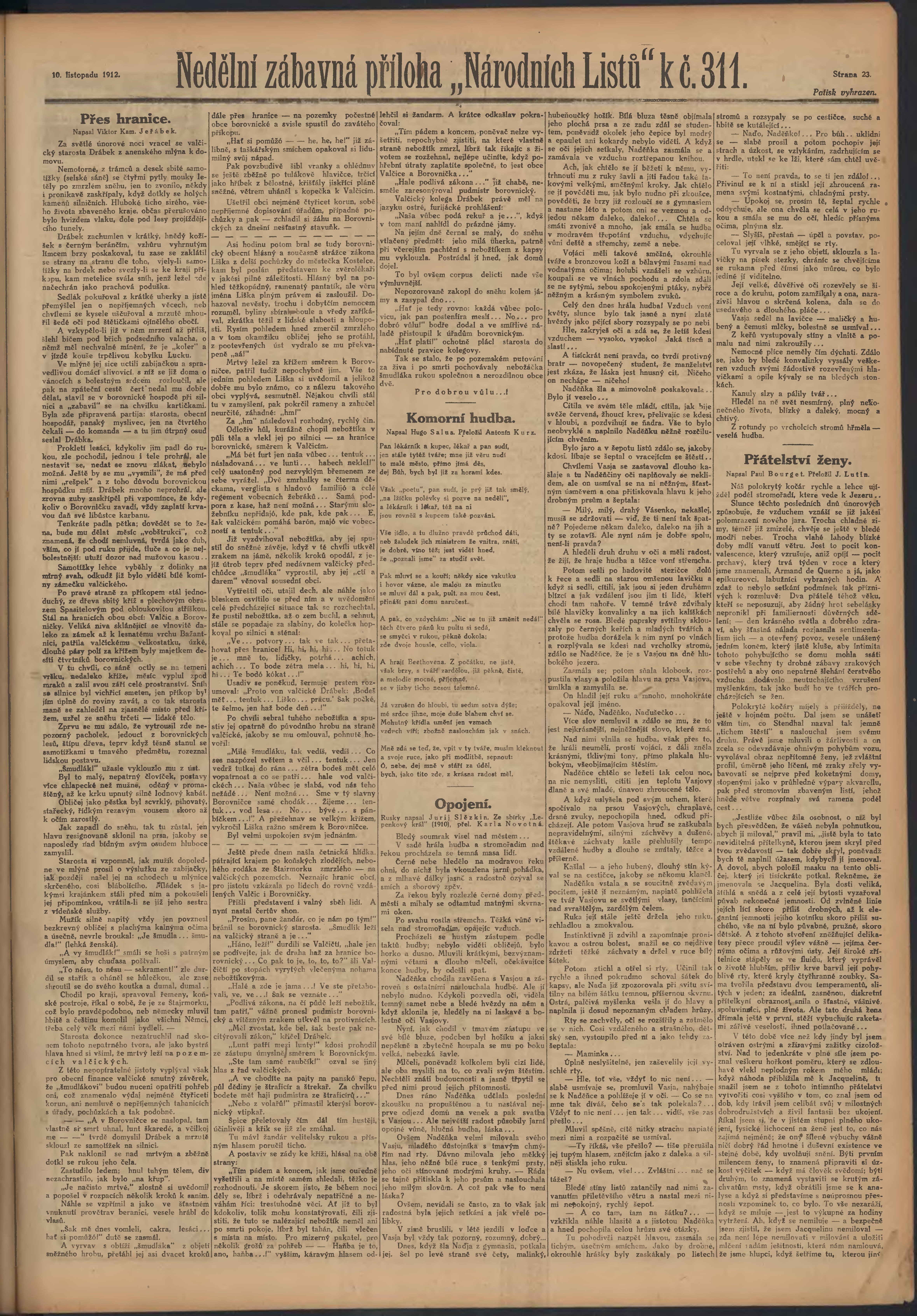 * Datum vydání výtisku: 10.11.1912 Číslo výtisku: 311 Poznámky k výtisku: ranní vydání;