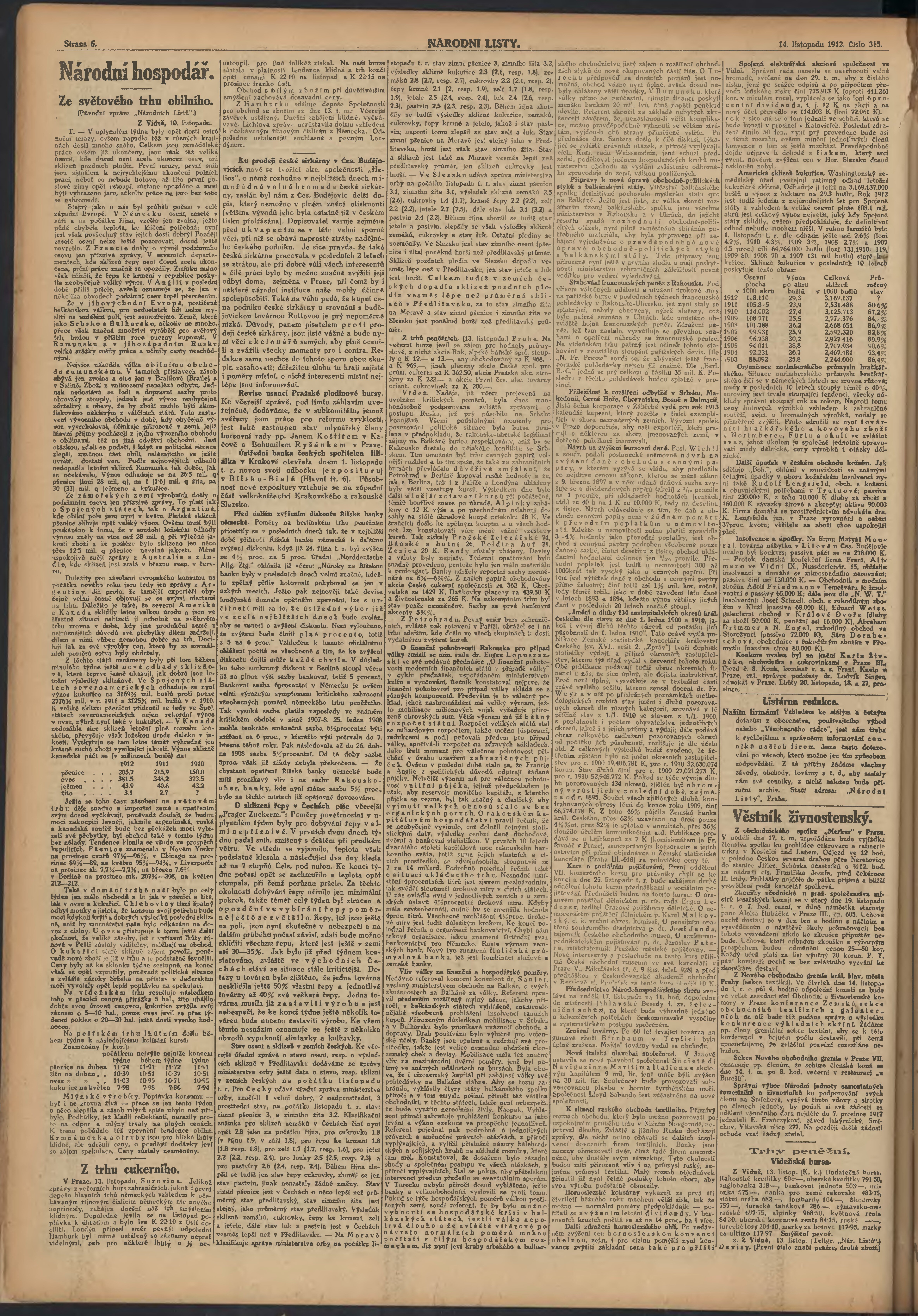 * Datum vydání výtisku: 14.11.1912 Číslo výtisku: 315 Poznámky k výtisku: ranní vydání;