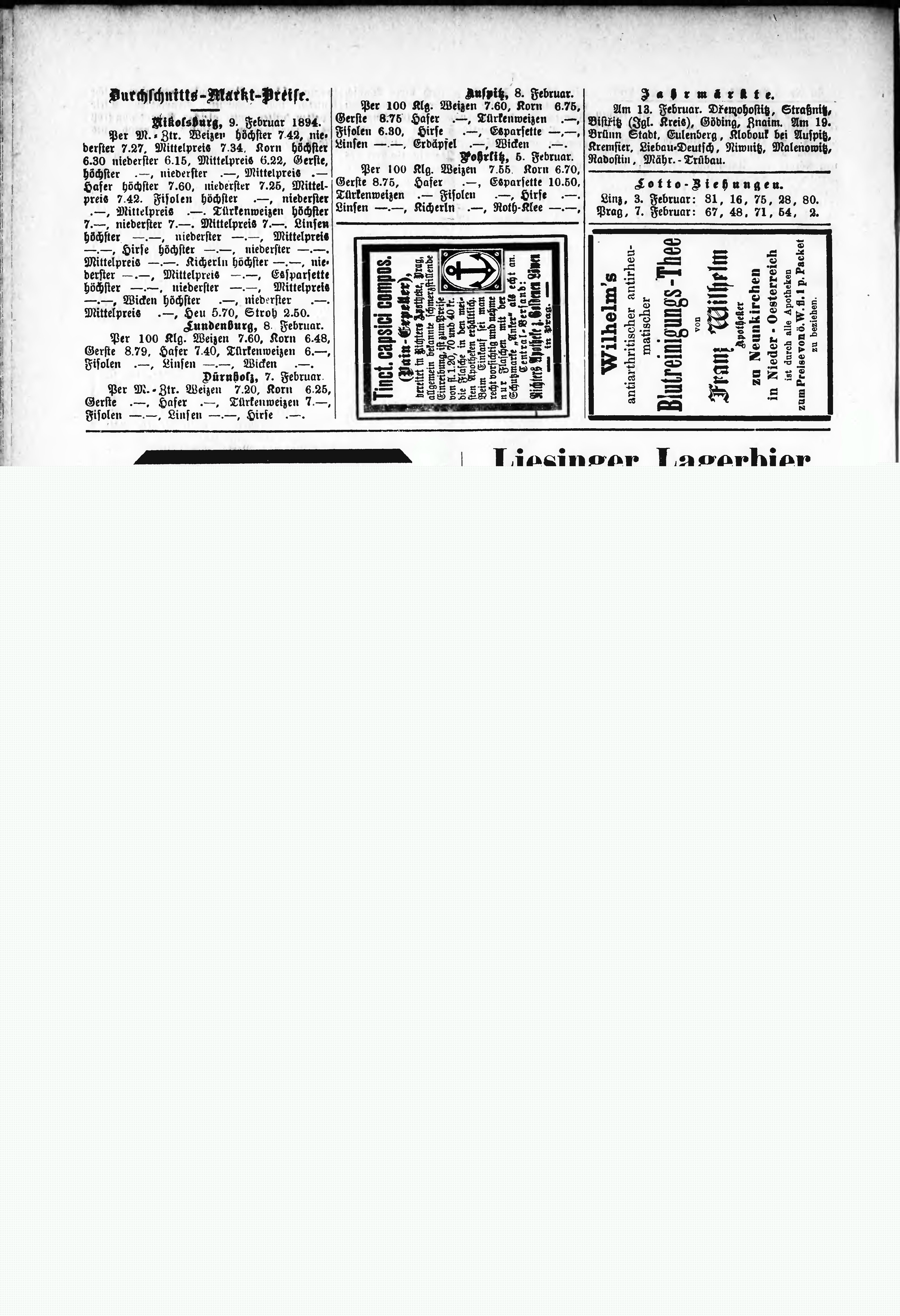 * Datum vydání výtisku: 10.2.1894 Číslo výtisku: 6