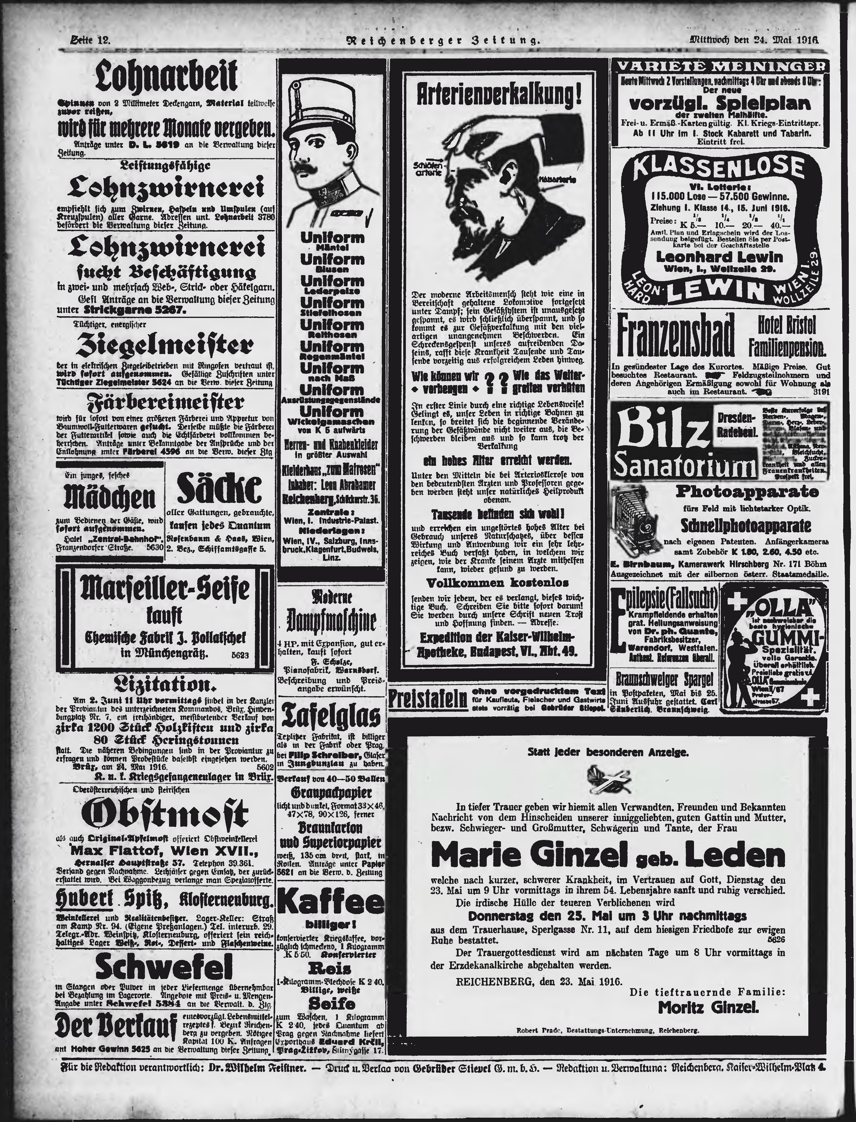 * Datum vydání výtisku: 24.5.1916 Číslo výtisku: 127 Poznámky k výtisku: ranní vydání;