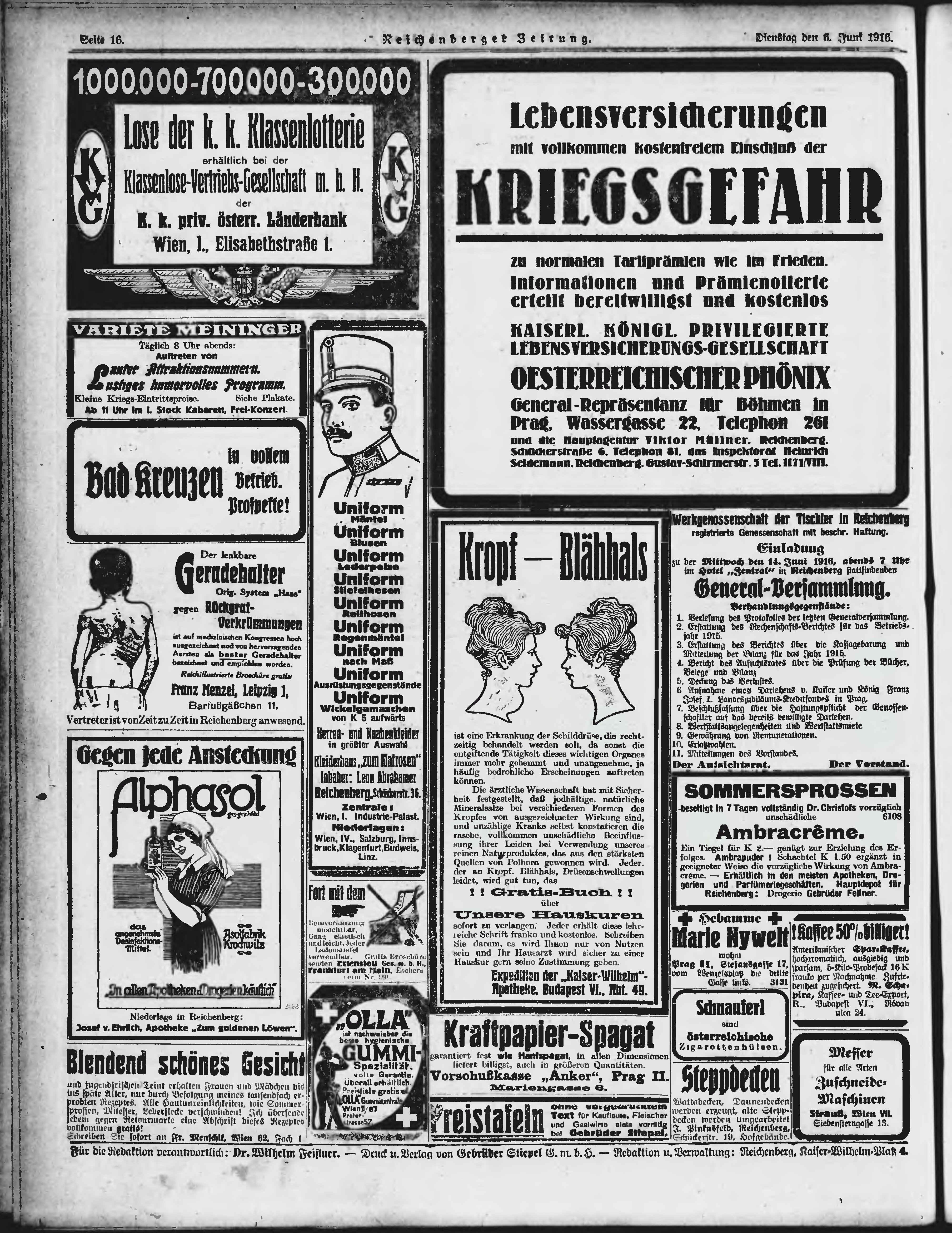 * Datum vydání výtisku: 6.6.1916 Číslo výtisku: 138 Poznámky k výtisku: ranní vydání;