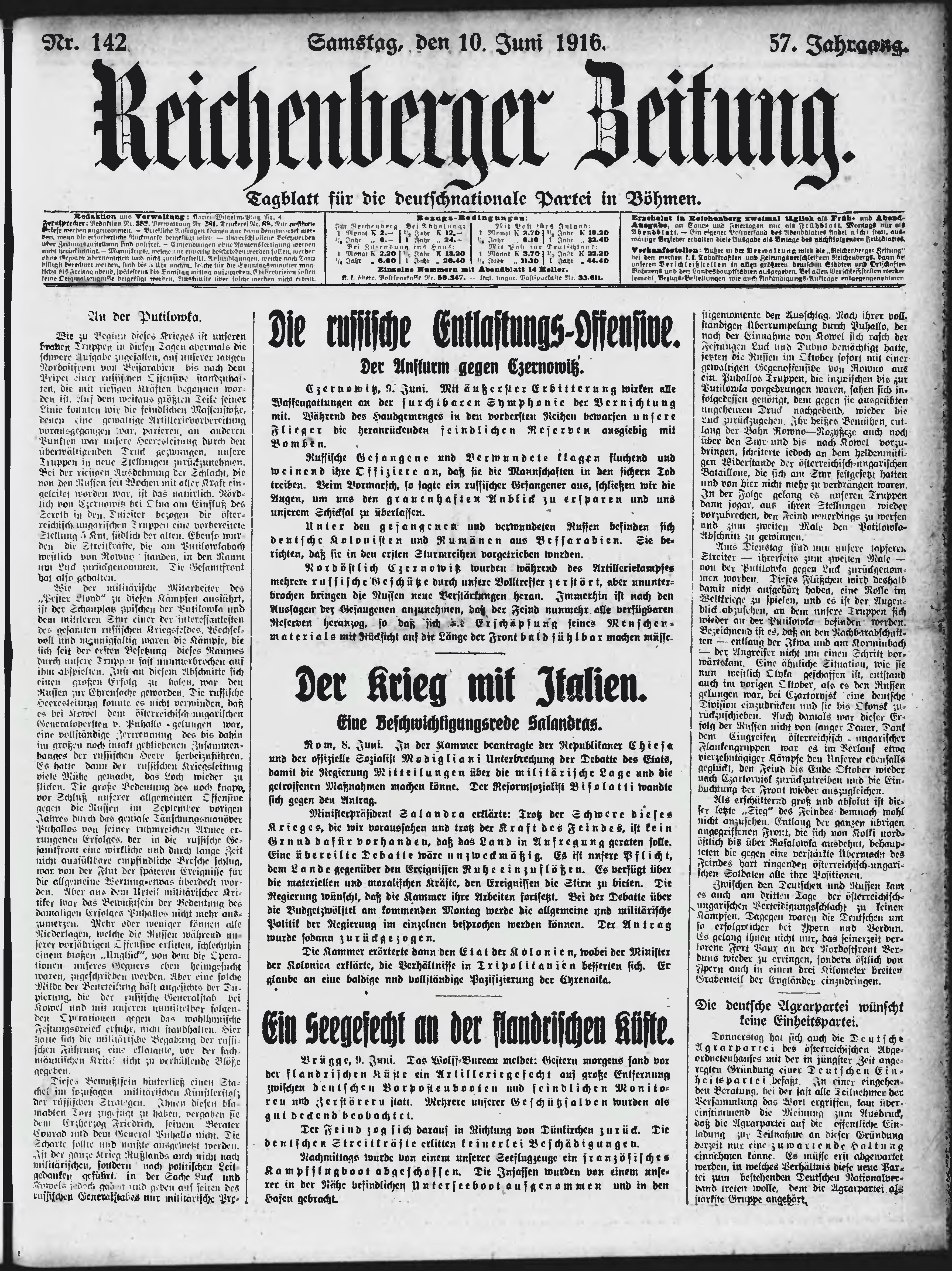 * Datum vydání výtisku: 10.6.1916 Číslo výtisku: 142 Poznámky k výtisku: ranní vydání;