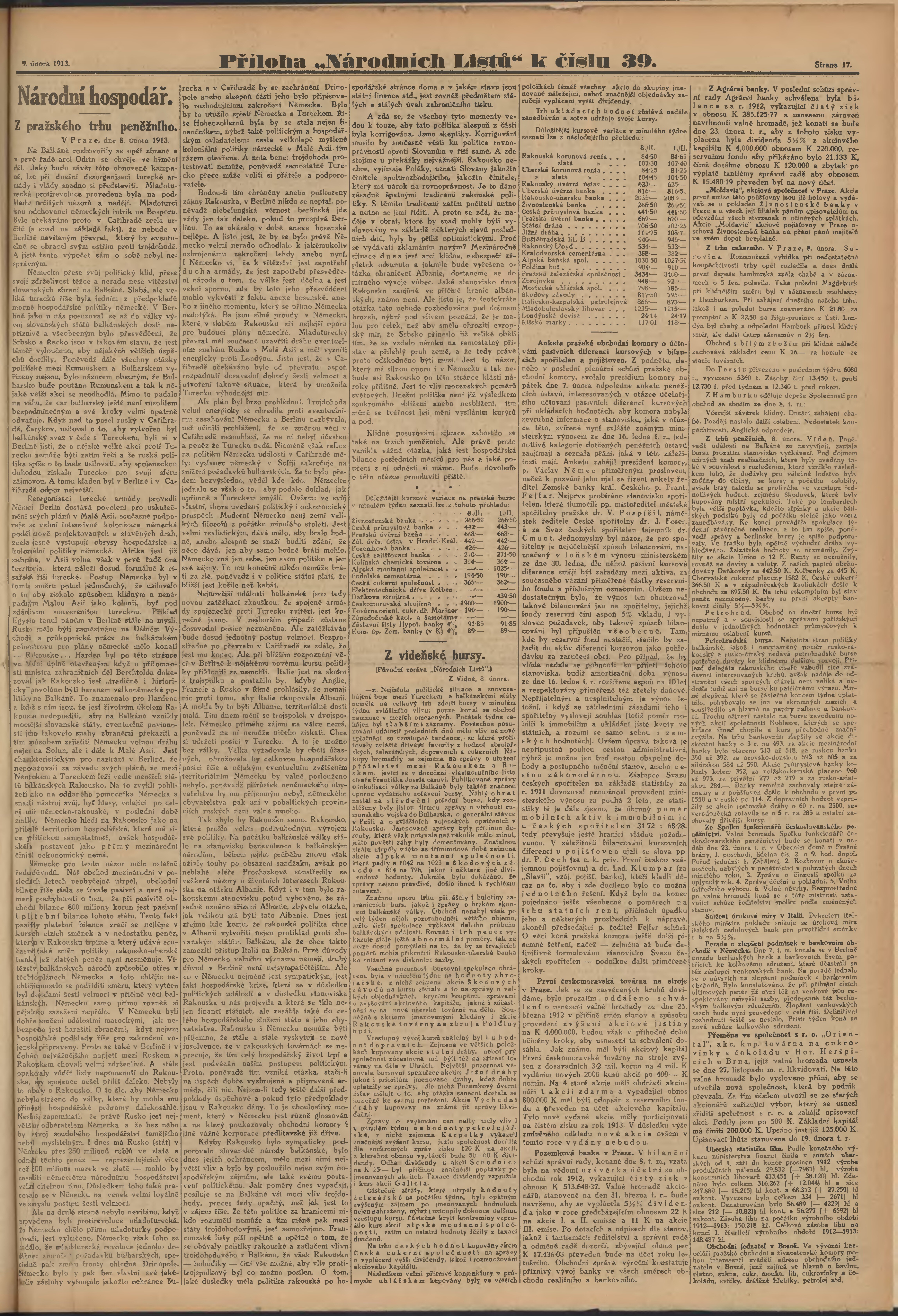 * Datum vydání výtisku: 9.2.1913 Číslo výtisku: 39 Poznámky k výtisku: ranní vydání;