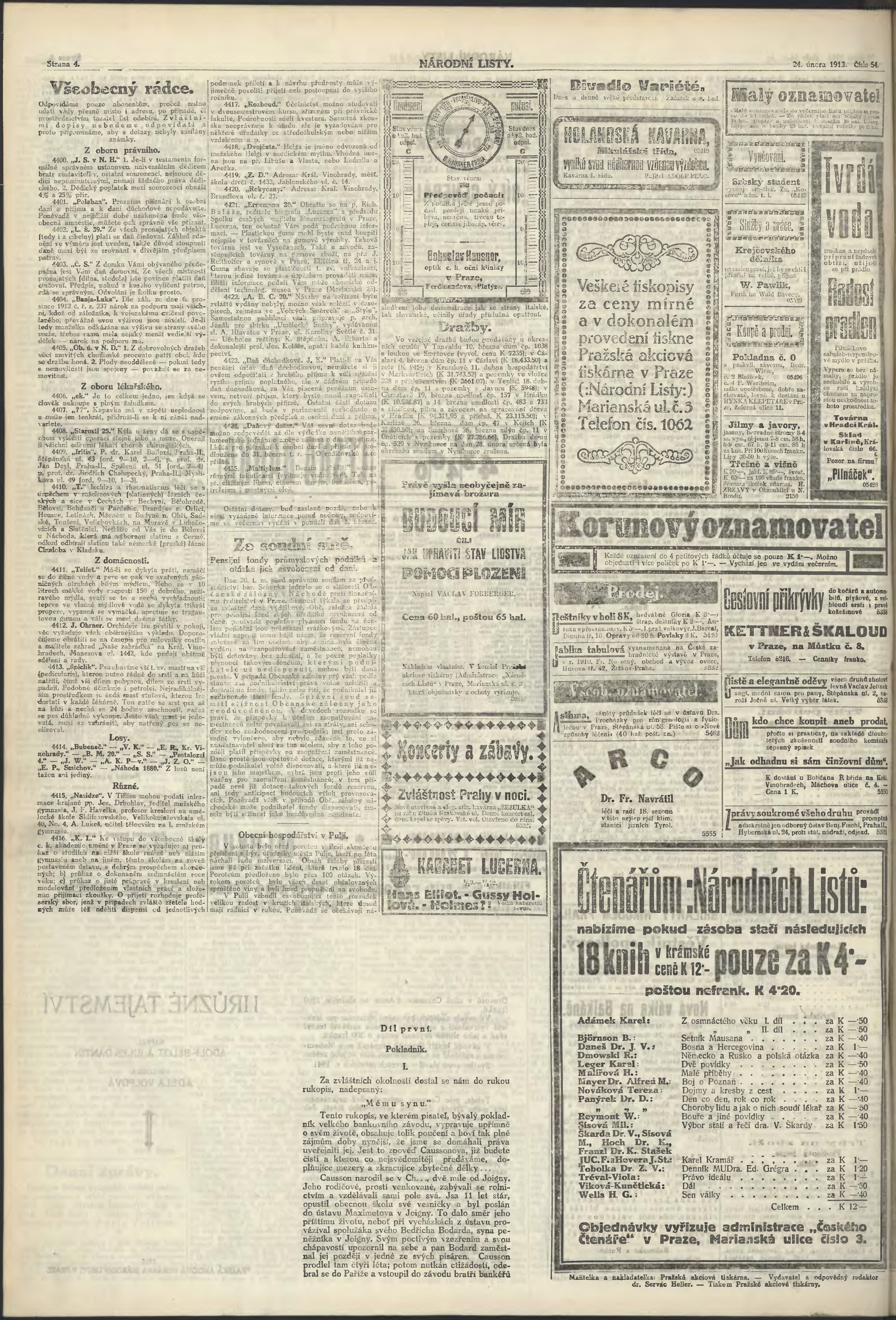 * Datum vydání výtisku: 24.2.1913 Číslo výtisku: 54 Poznámky k výtisku: 2. večerní vydání;