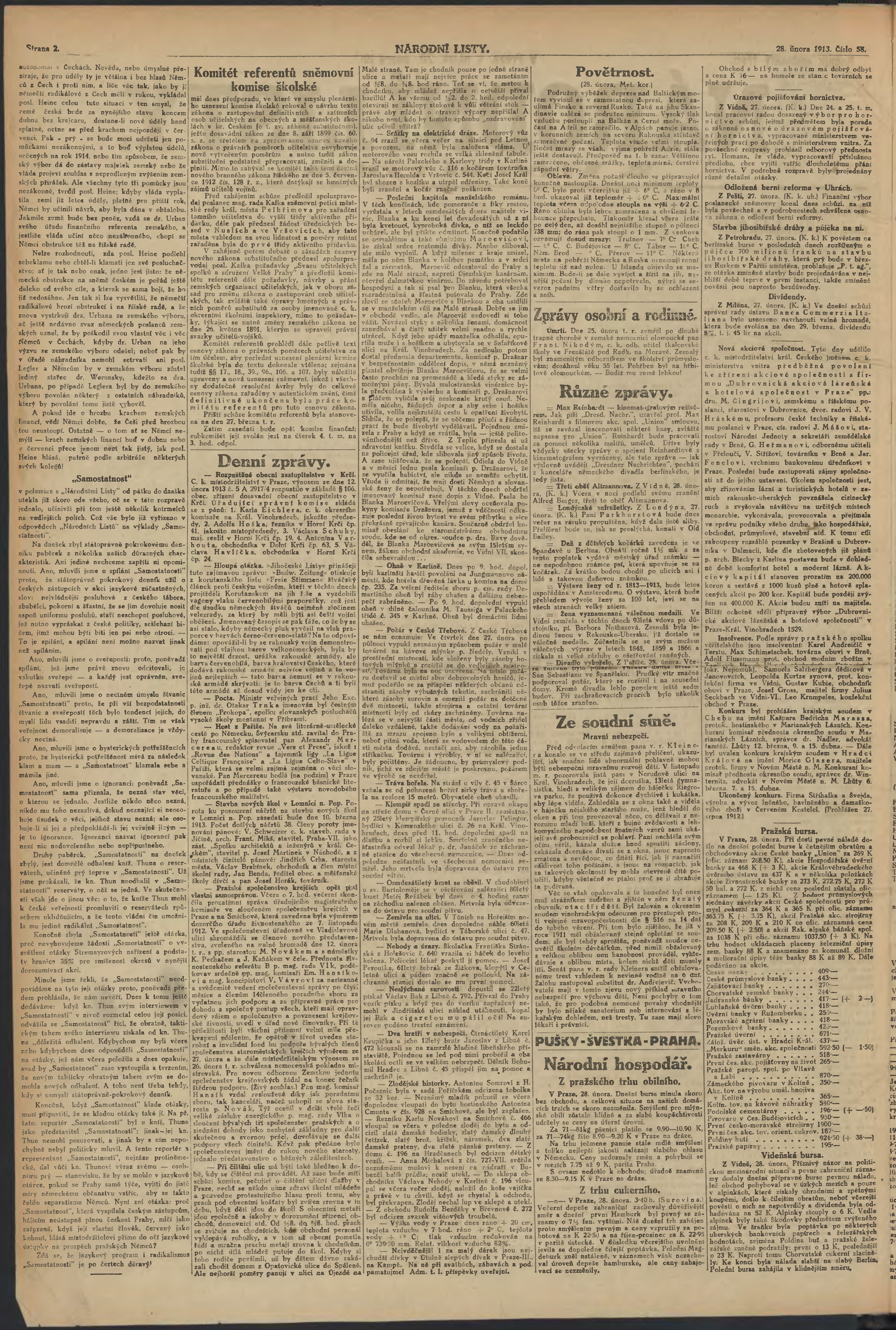 * Datum vydání výtisku: 28.2.1913 Číslo výtisku: 58 Poznámky k výtisku: 2. večerní vydání;