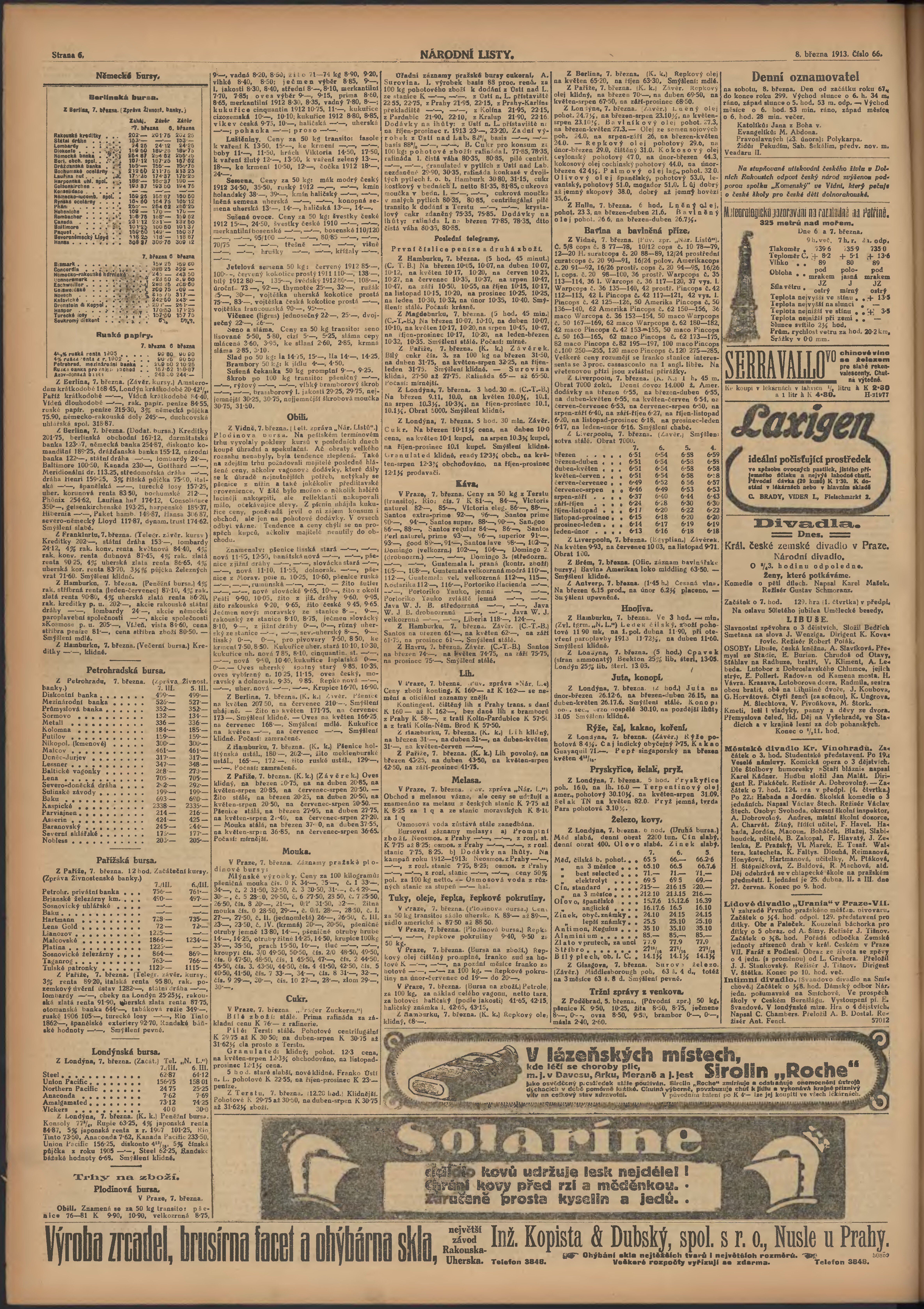 * Datum vydání výtisku: 8.3.1913 Číslo výtisku: 66 Poznámky k výtisku: ranní vydání;