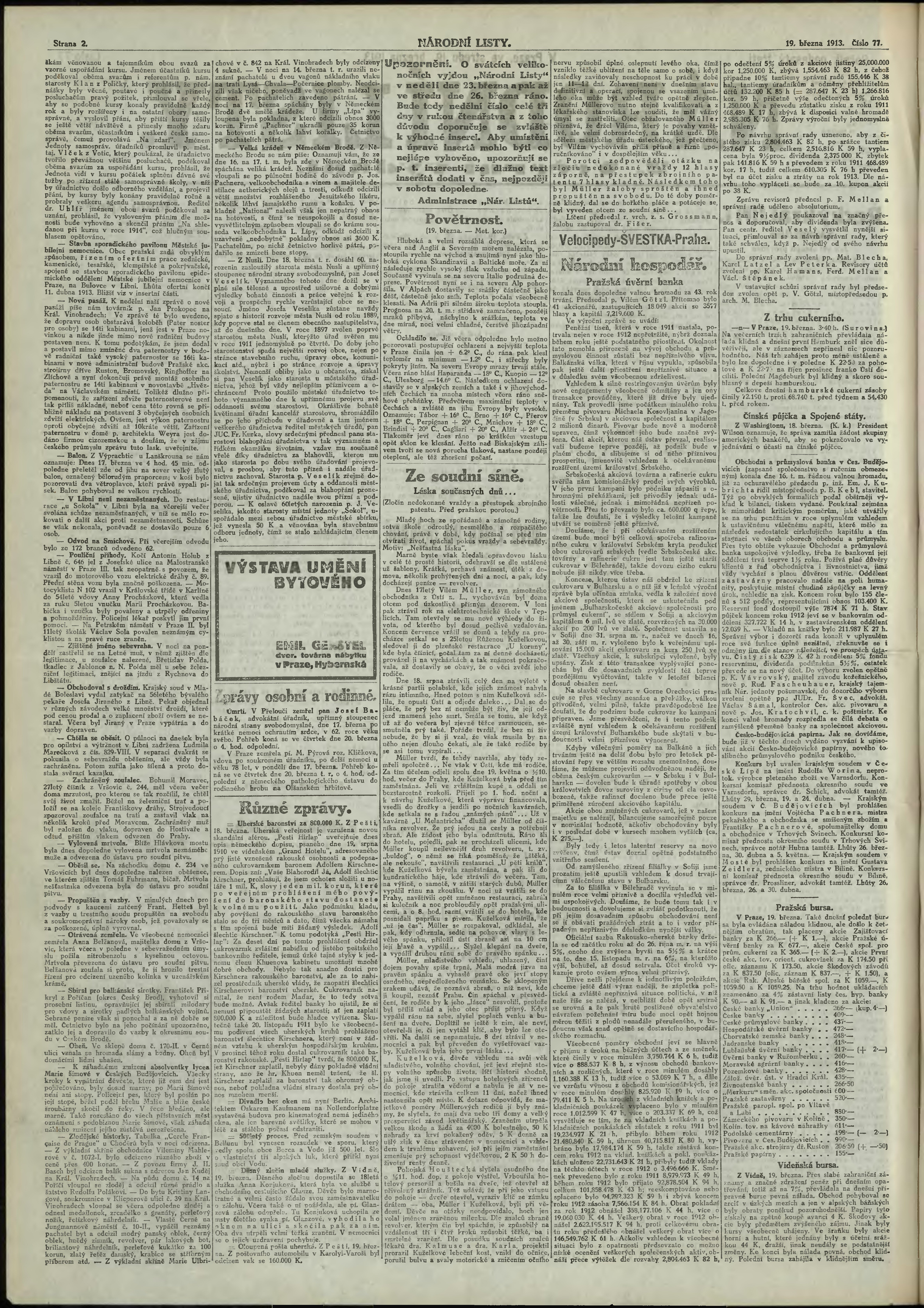 * Datum vydání výtisku: 19.3.1913 Číslo výtisku: 77 Poznámky k výtisku: 2. večerní vydání;