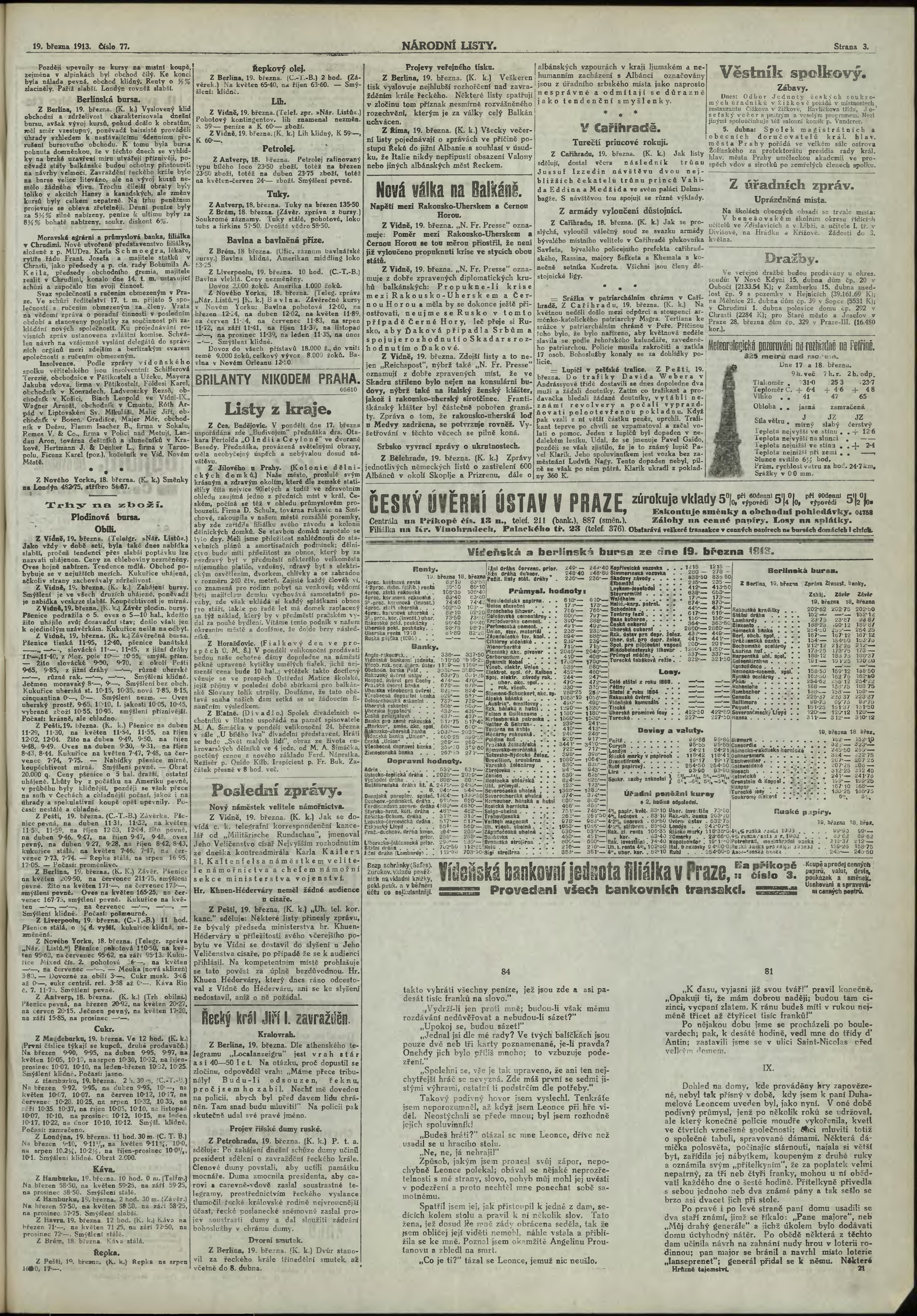 * Datum vydání výtisku: 19.3.1913 Číslo výtisku: 77 Poznámky k výtisku: 2. večerní vydání;