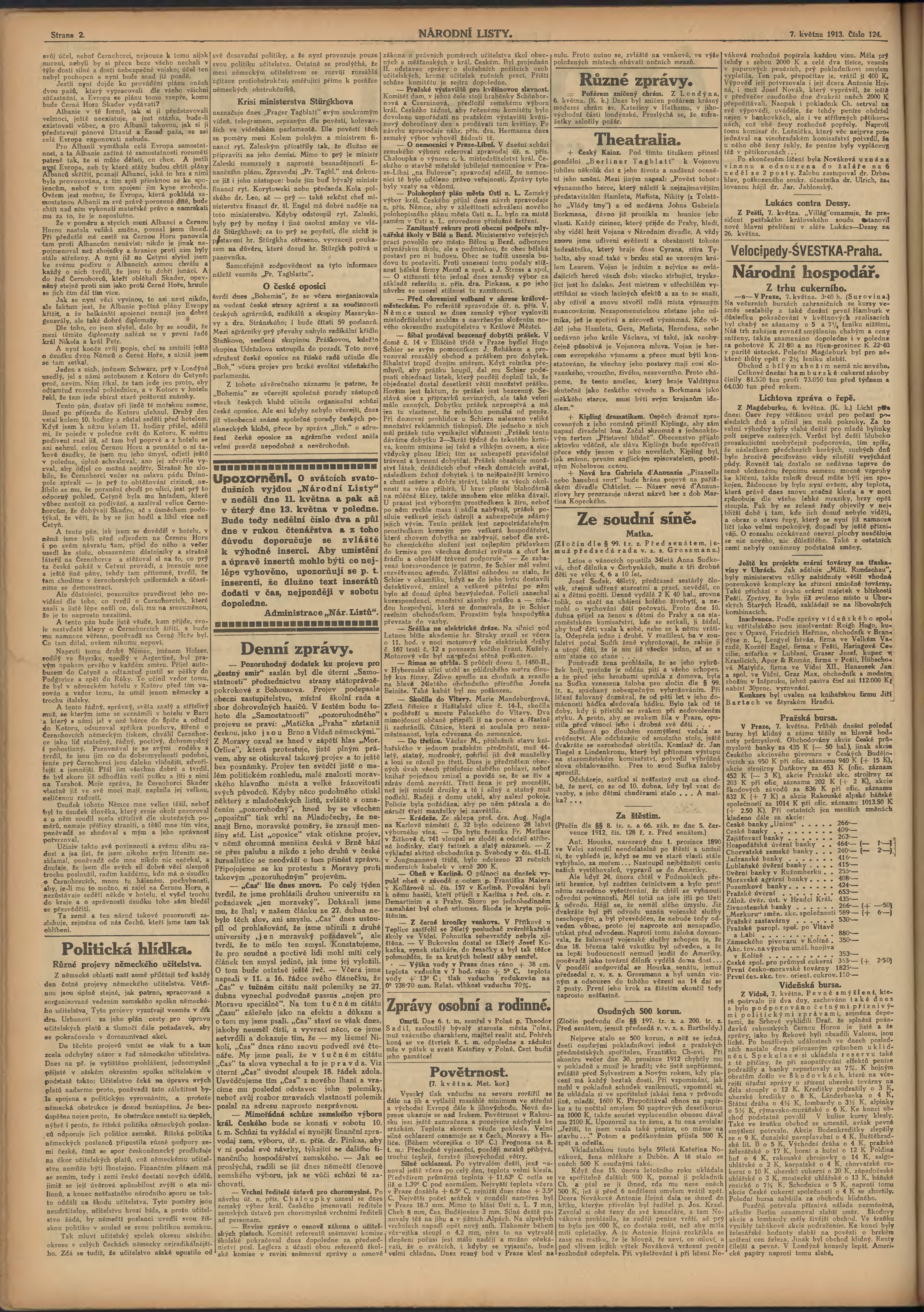 * Datum vydání výtisku: 7.5.1913 Číslo výtisku: 124 Poznámky k výtisku: 2. večerní vydání;