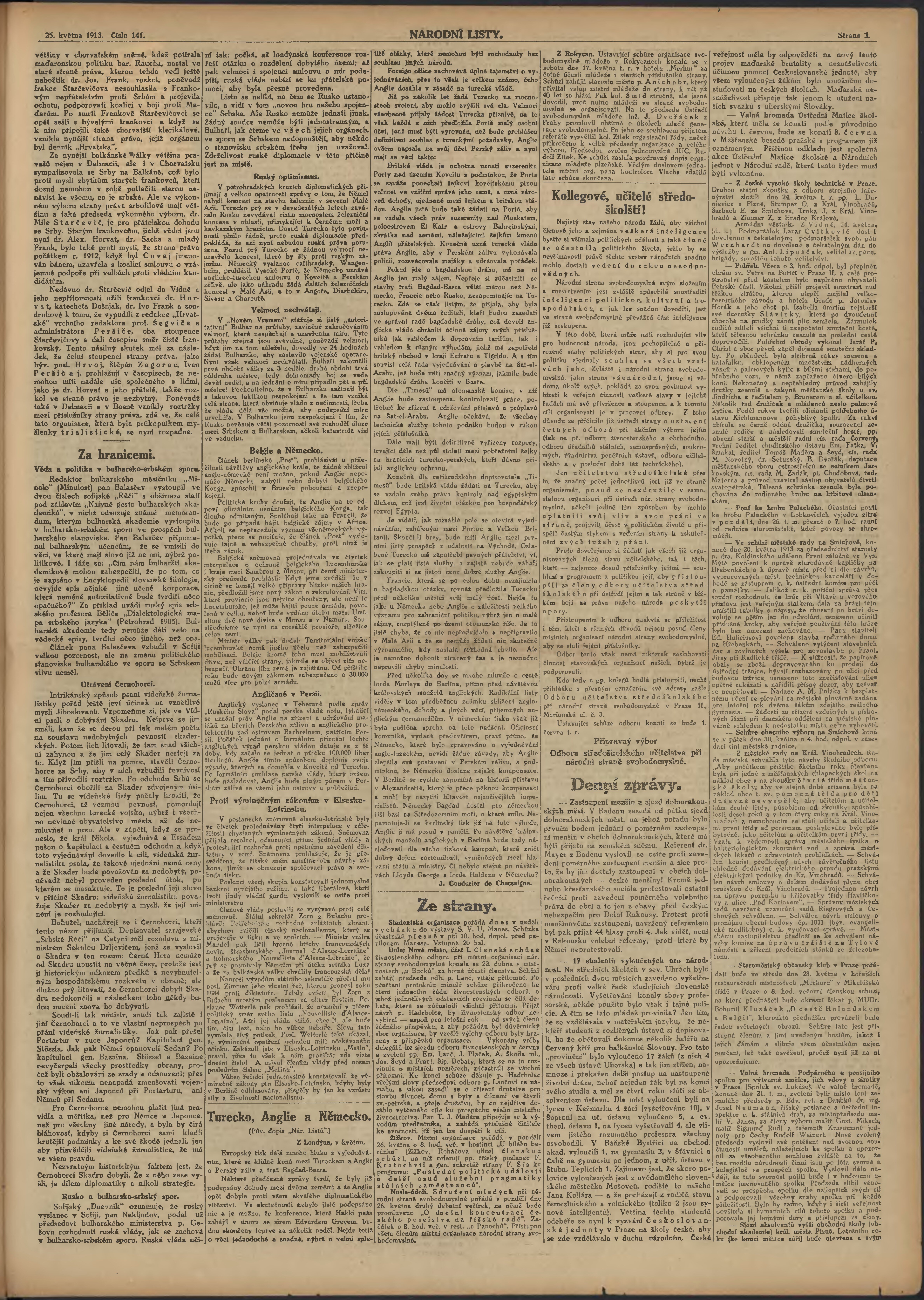 * Datum vydání výtisku: 25.5.1913 Číslo výtisku: 141 Poznámky k výtisku: ranní vydání;