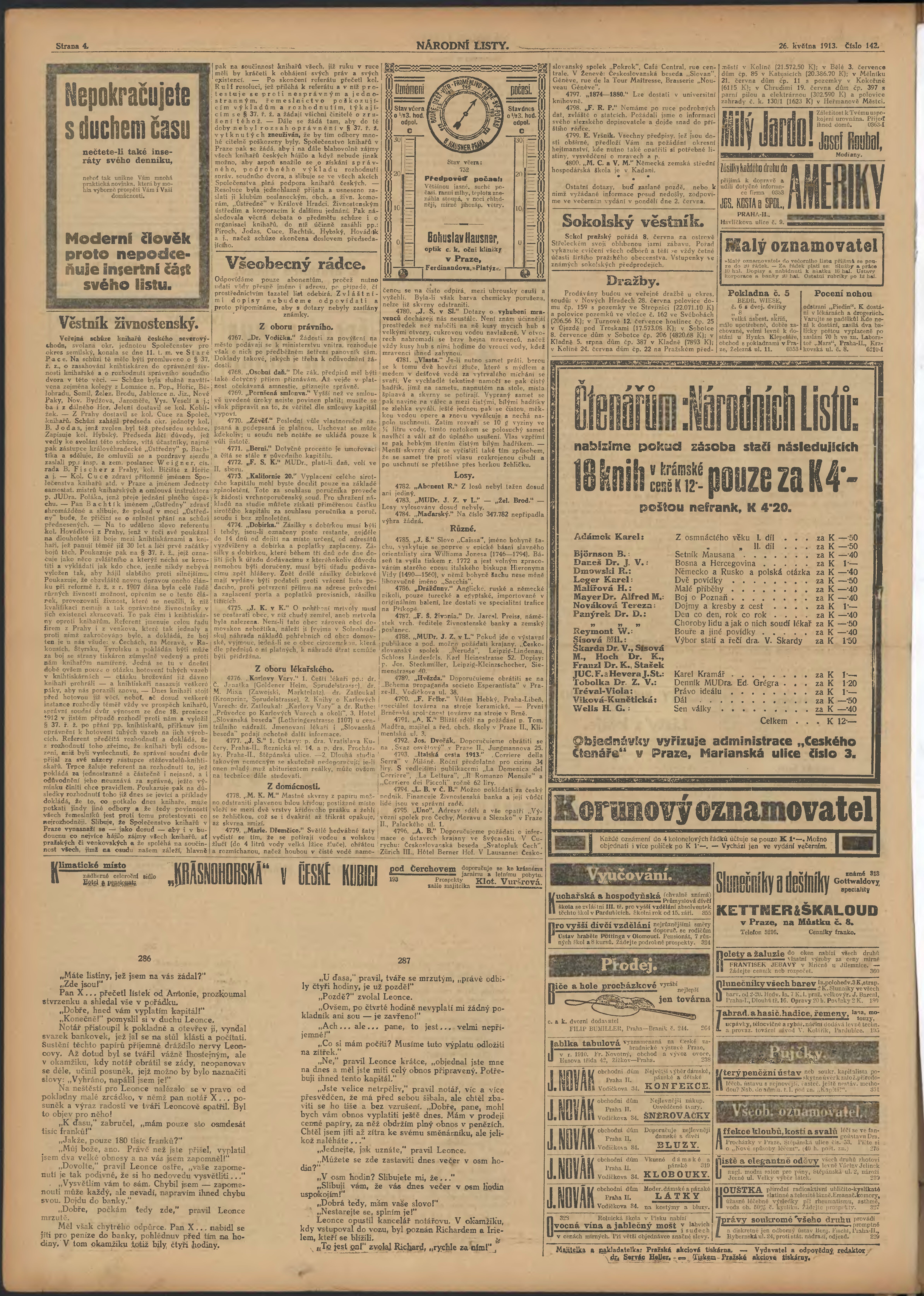 * Datum vydání výtisku: 26.5.1913 Číslo výtisku: 142 Poznámky k výtisku: 2. večerní vydání;