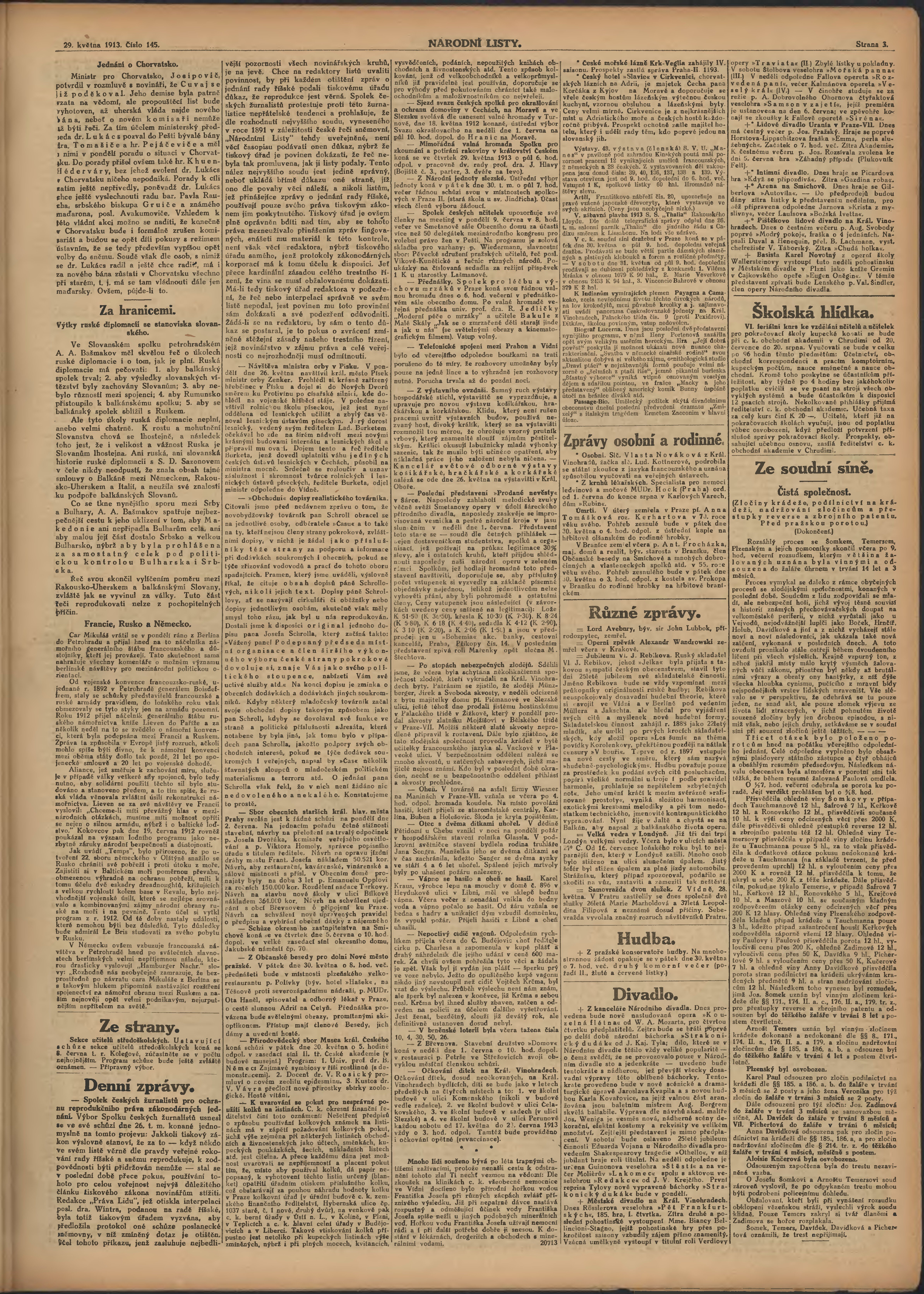 * Datum vydání výtisku: 29.5.1913 Číslo výtisku: 145 Poznámky k výtisku: ranní vydání;