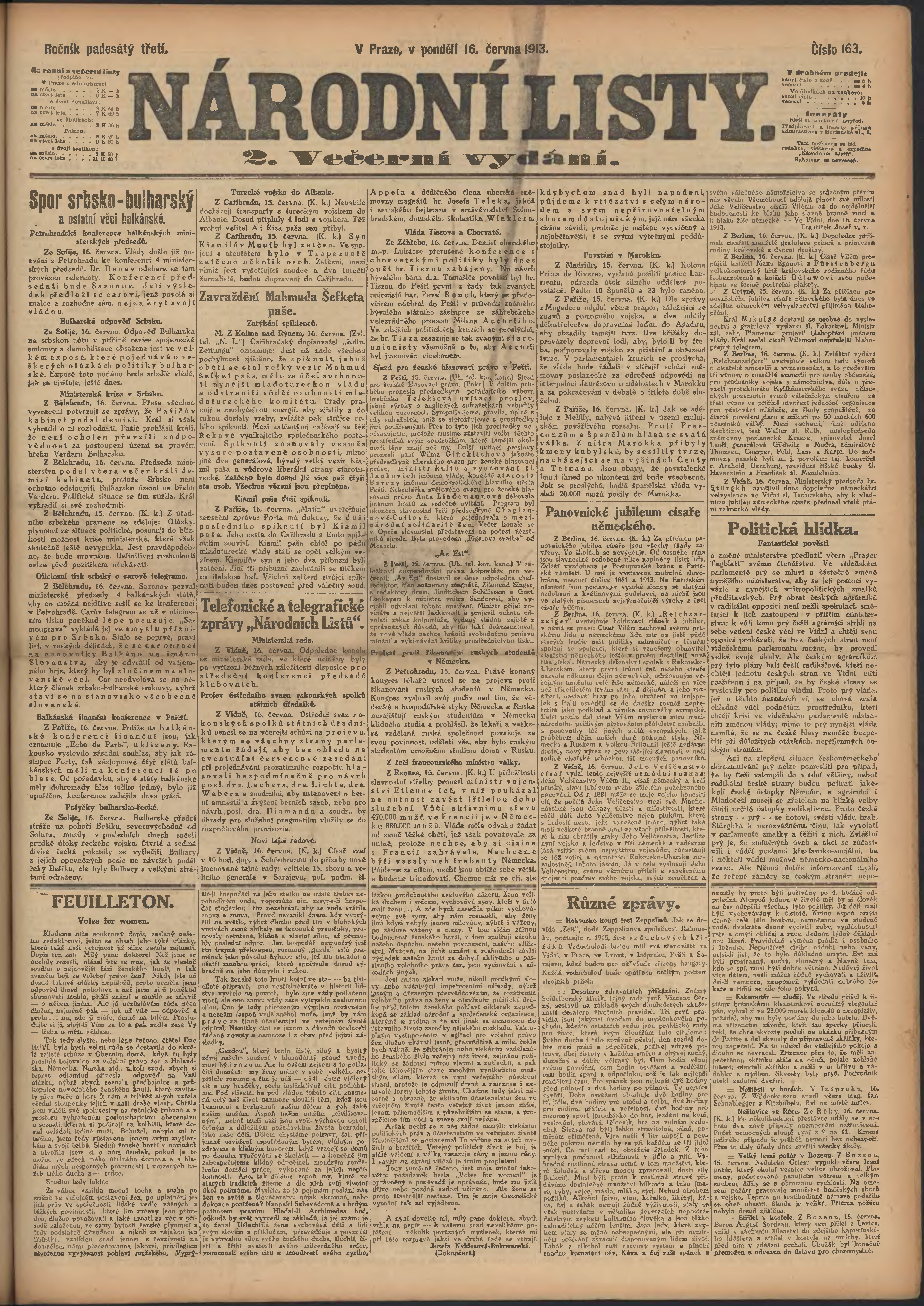 * Datum vydání výtisku: 16.6.1913 Číslo výtisku: 163 Poznámky k výtisku: 2. večerní vydání;