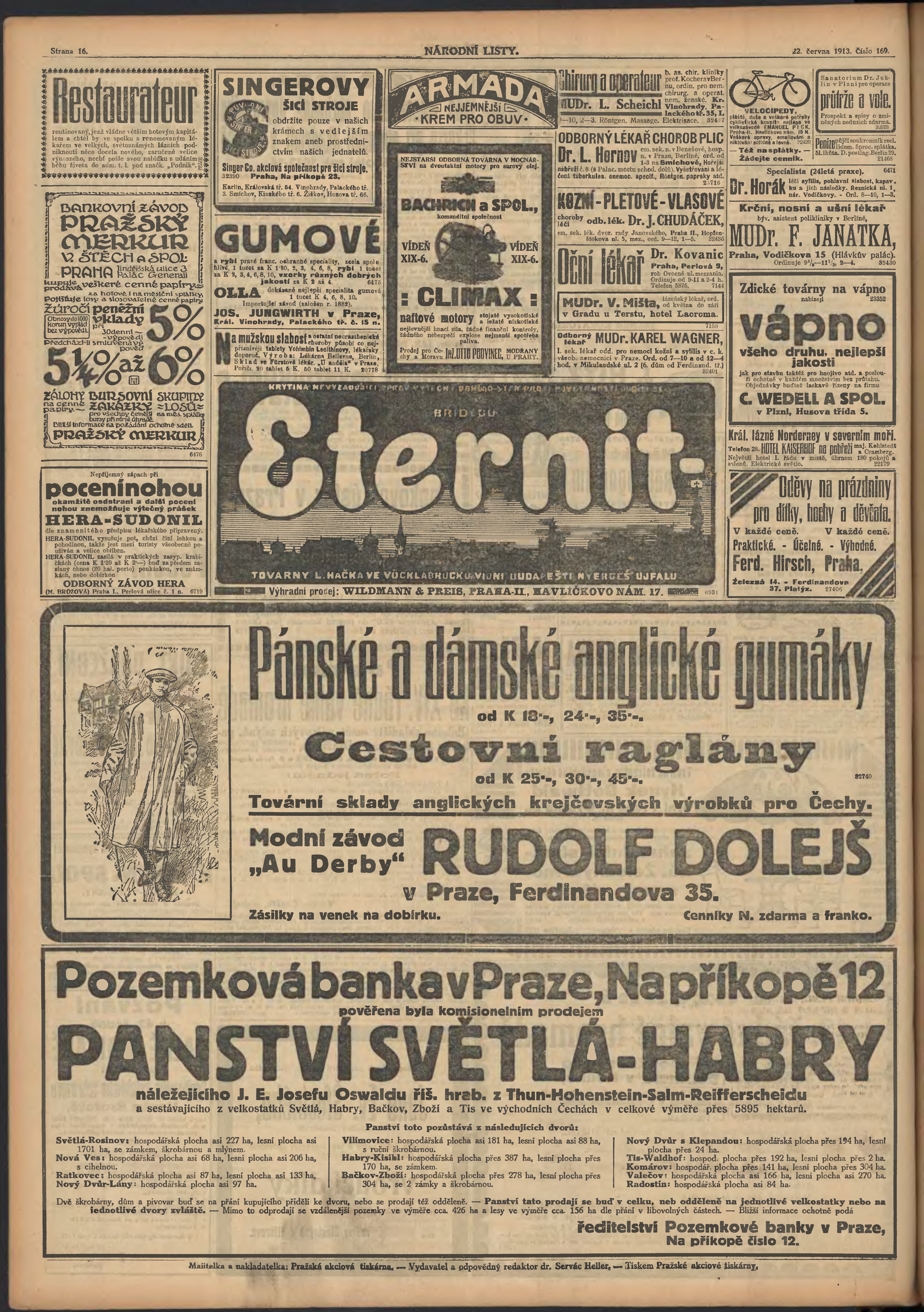* Datum vydání výtisku: 22.6.1913 Číslo výtisku: 169 Poznámky k výtisku: ranní vydání;