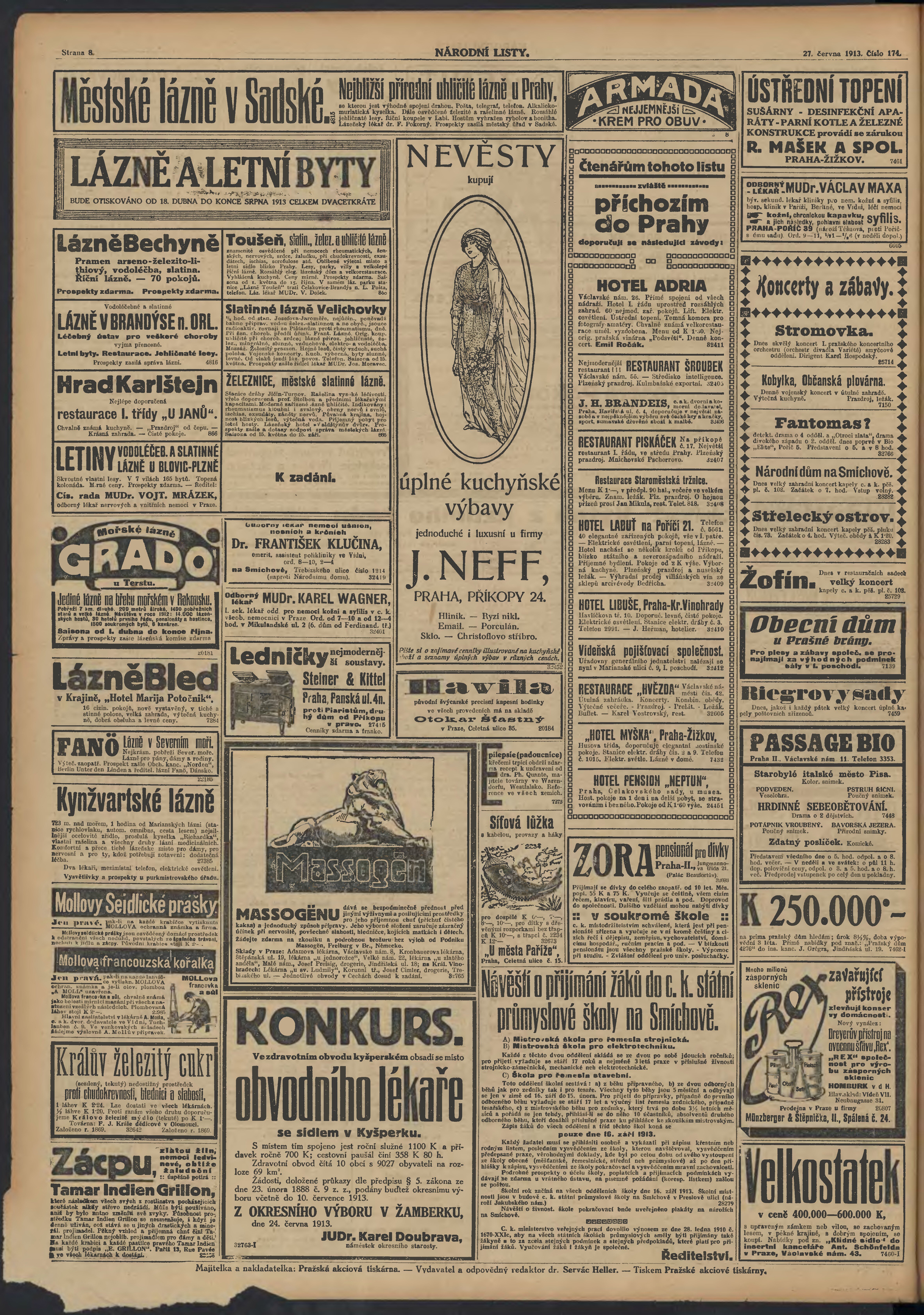 * Datum vydání výtisku: 27.6.1913 Číslo výtisku: 174 Poznámky k výtisku: ranní vydání;