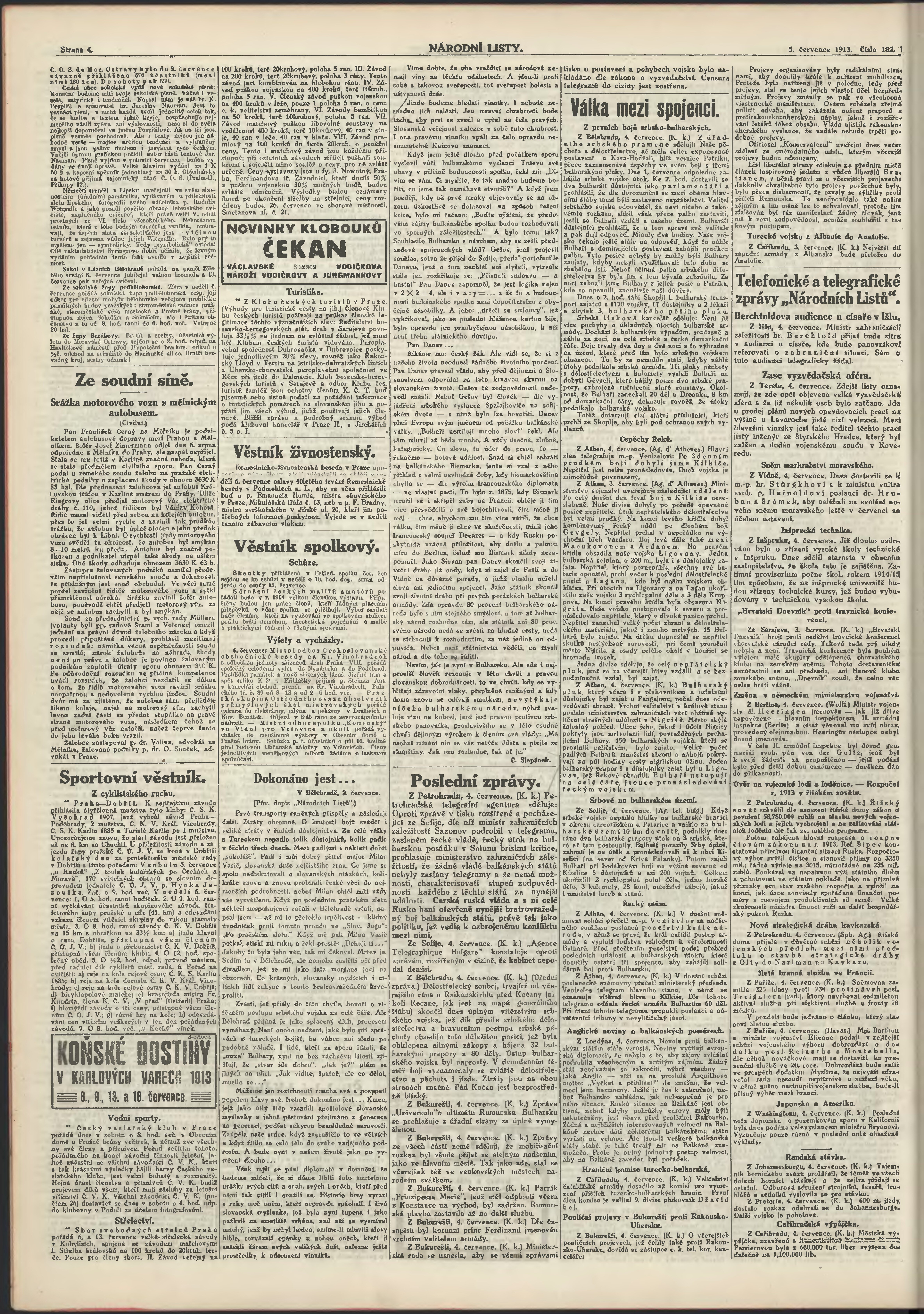 * Datum vydání výtisku: 5.7.1913 Číslo výtisku: 182 Poznámky k výtisku: ranní vydání;