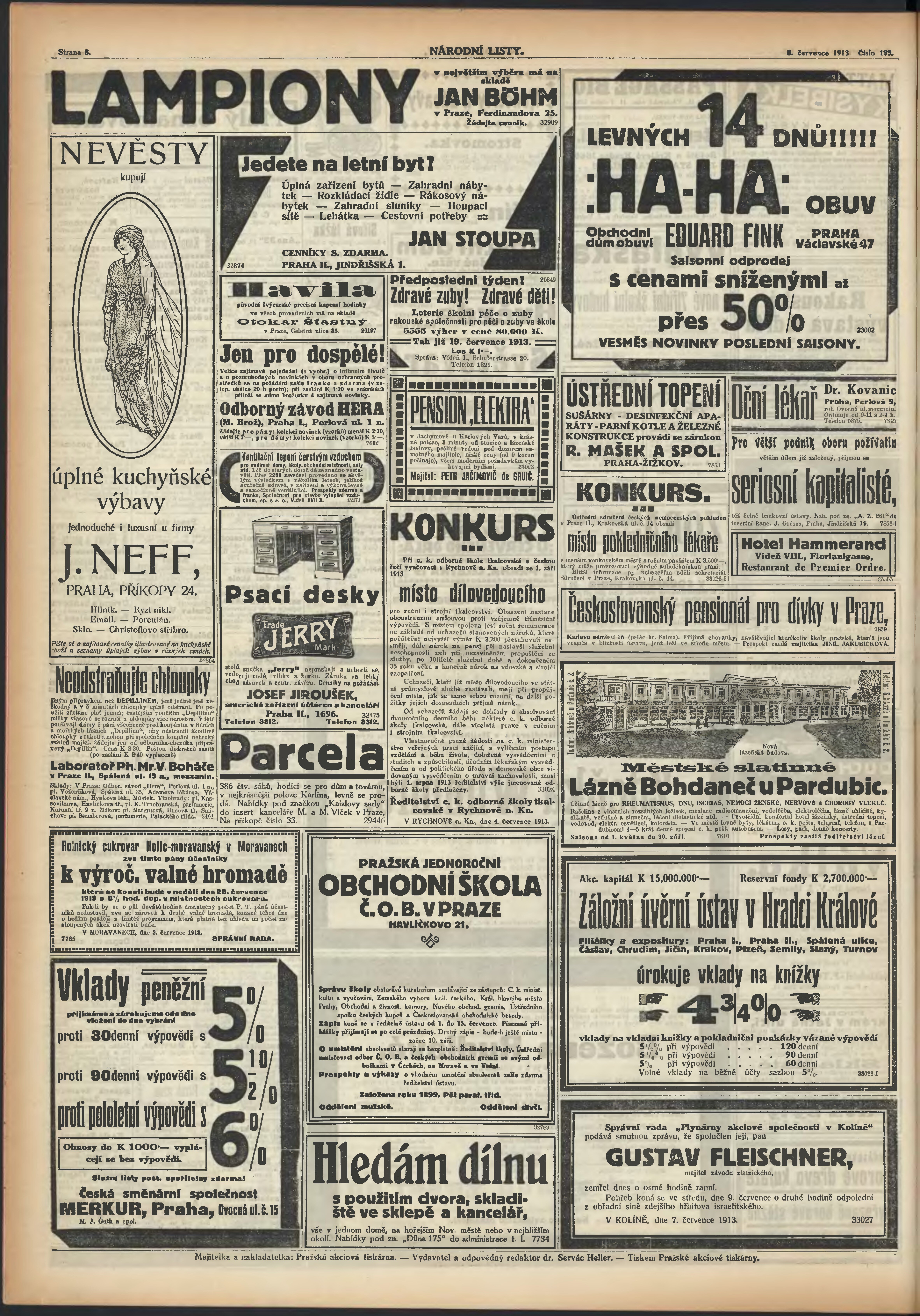 * Datum vydání výtisku: 8.7.1913 Číslo výtisku: 185 Poznámky k výtisku: ranní vydání;