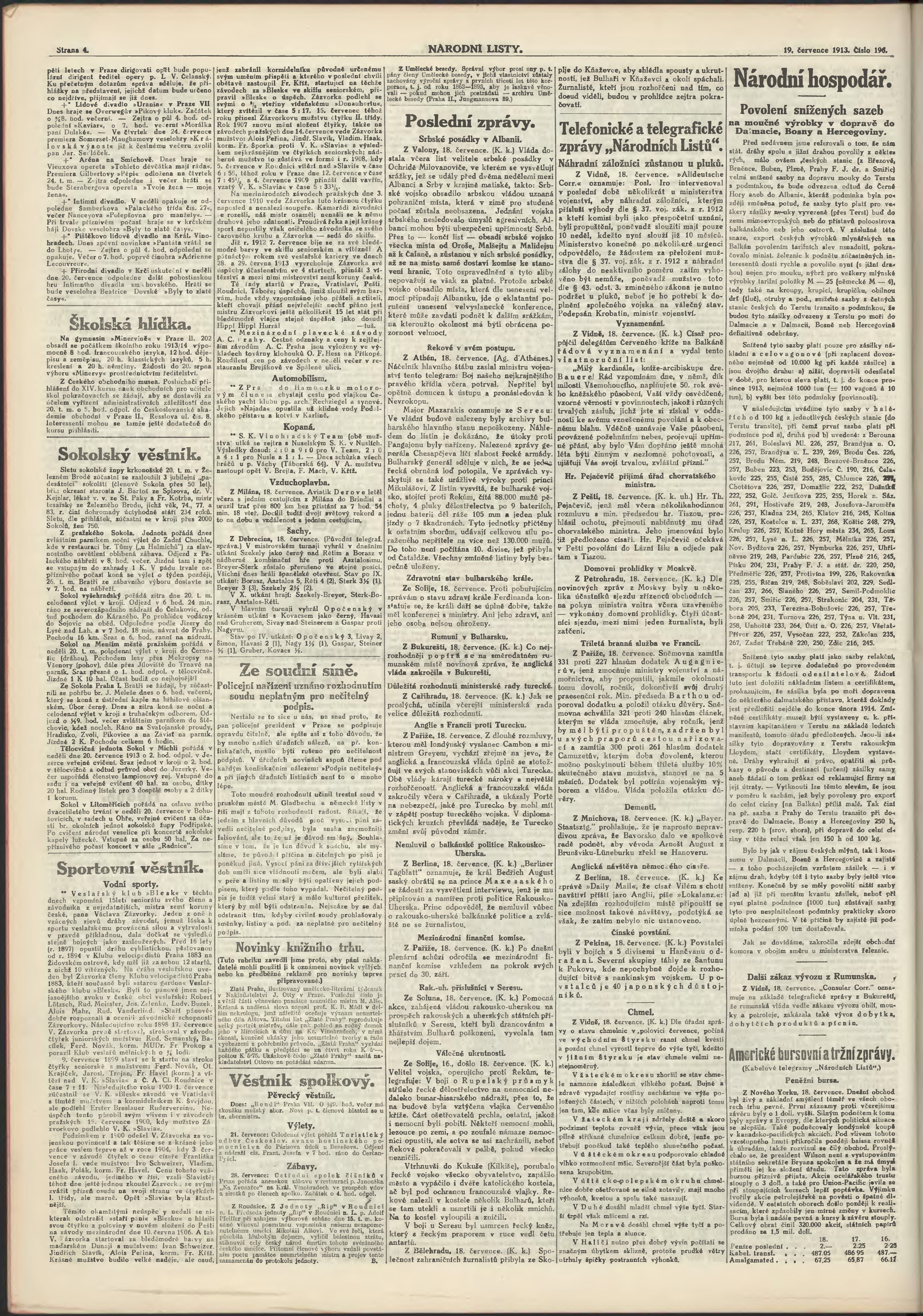 * Datum vydání výtisku: 19.7.1913 Číslo výtisku: 196 Poznámky k výtisku: ranní vydání;
