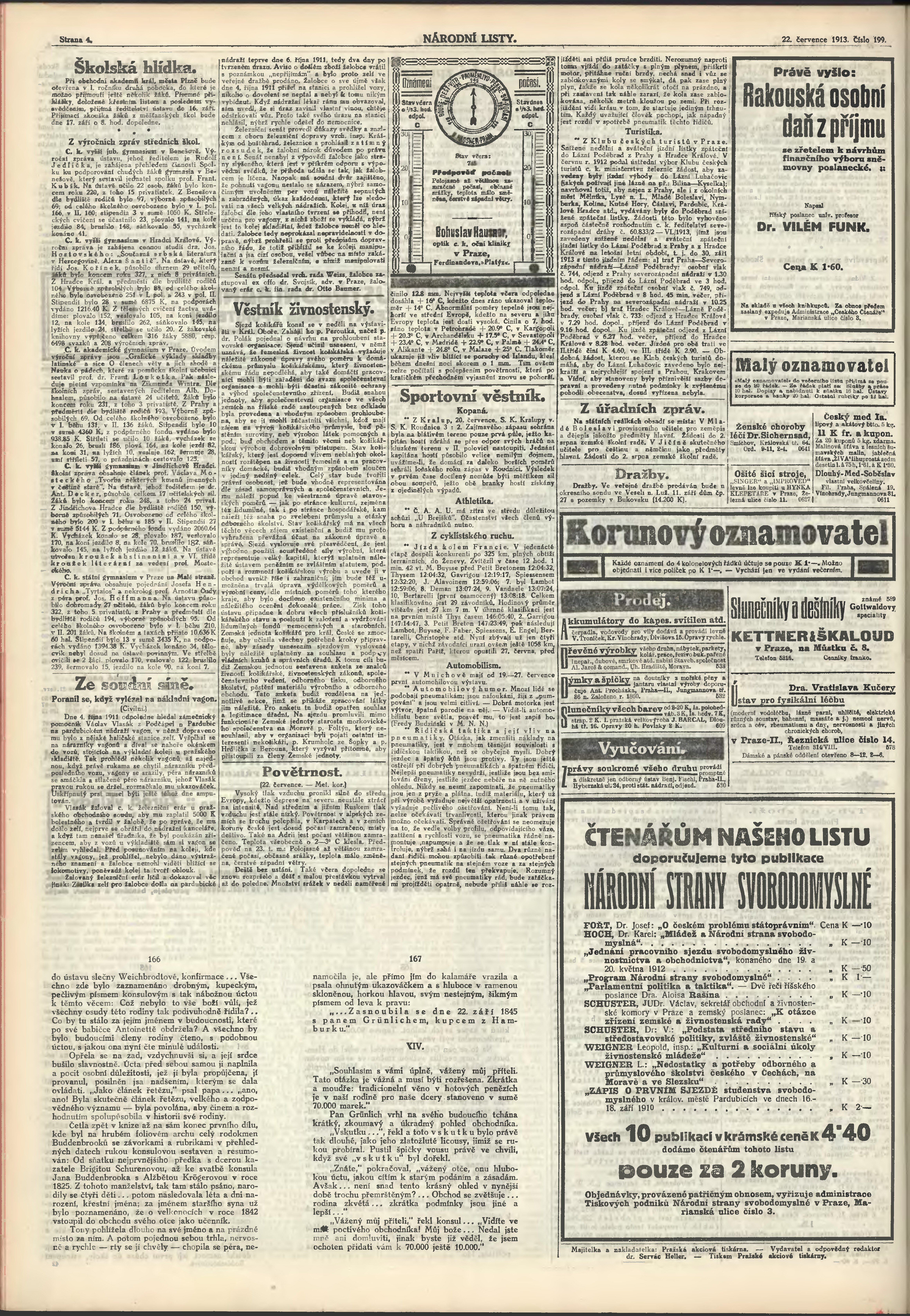 * Datum vydání výtisku: 22.7.1913 Číslo výtisku: 199 Poznámky k výtisku: 2. večerní vydání;