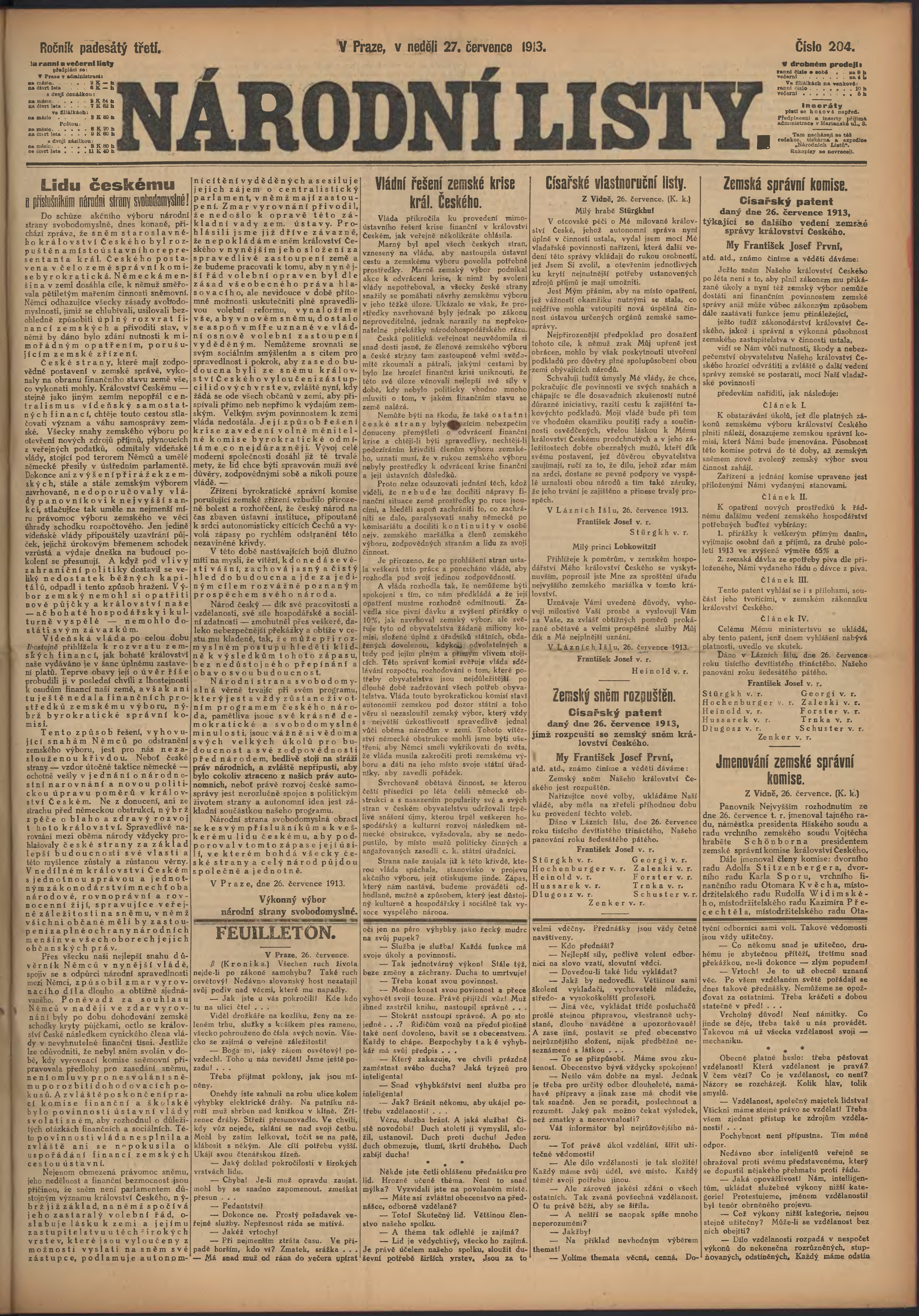 * Datum vydání výtisku: 27.7.1913 Číslo výtisku: 204 Poznámky k výtisku: ranní vydání;