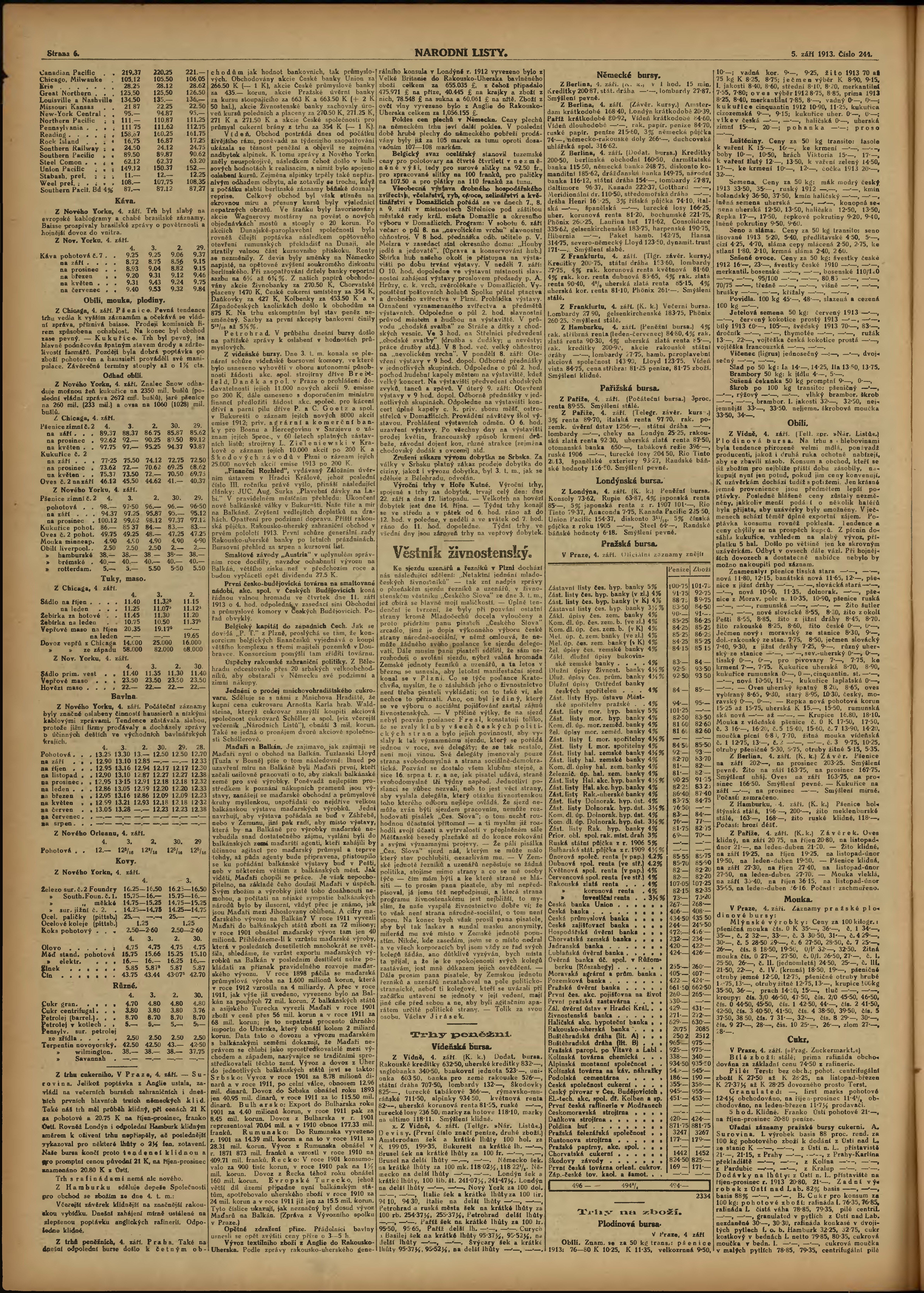 * Datum vydání výtisku: 5.9.1913 Číslo výtisku: 244 Poznámky k výtisku: ranní vydání;