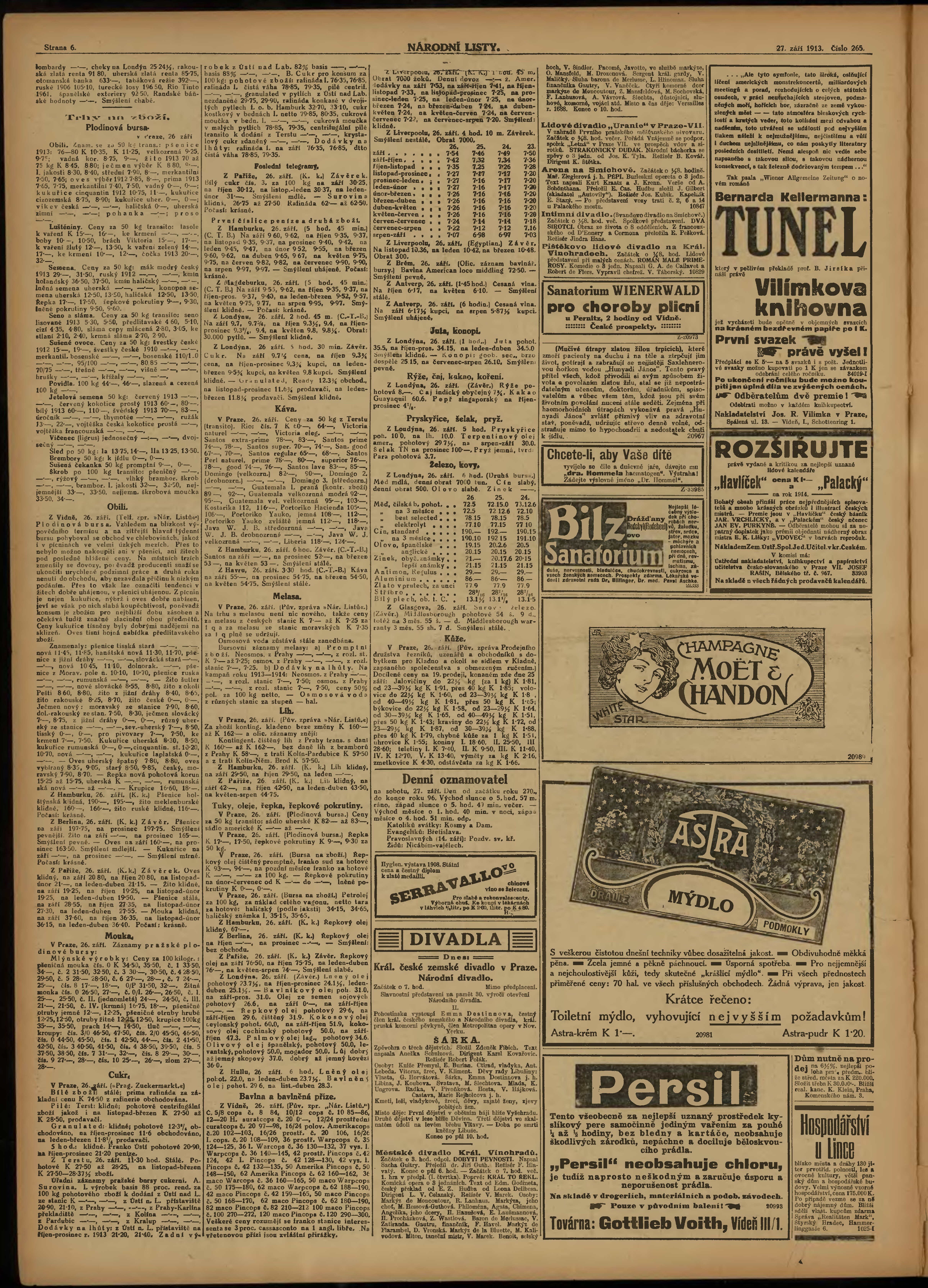 * Datum vydání výtisku: 27.9.1913 Číslo výtisku: 265 Poznámky k výtisku: ranní vydání;