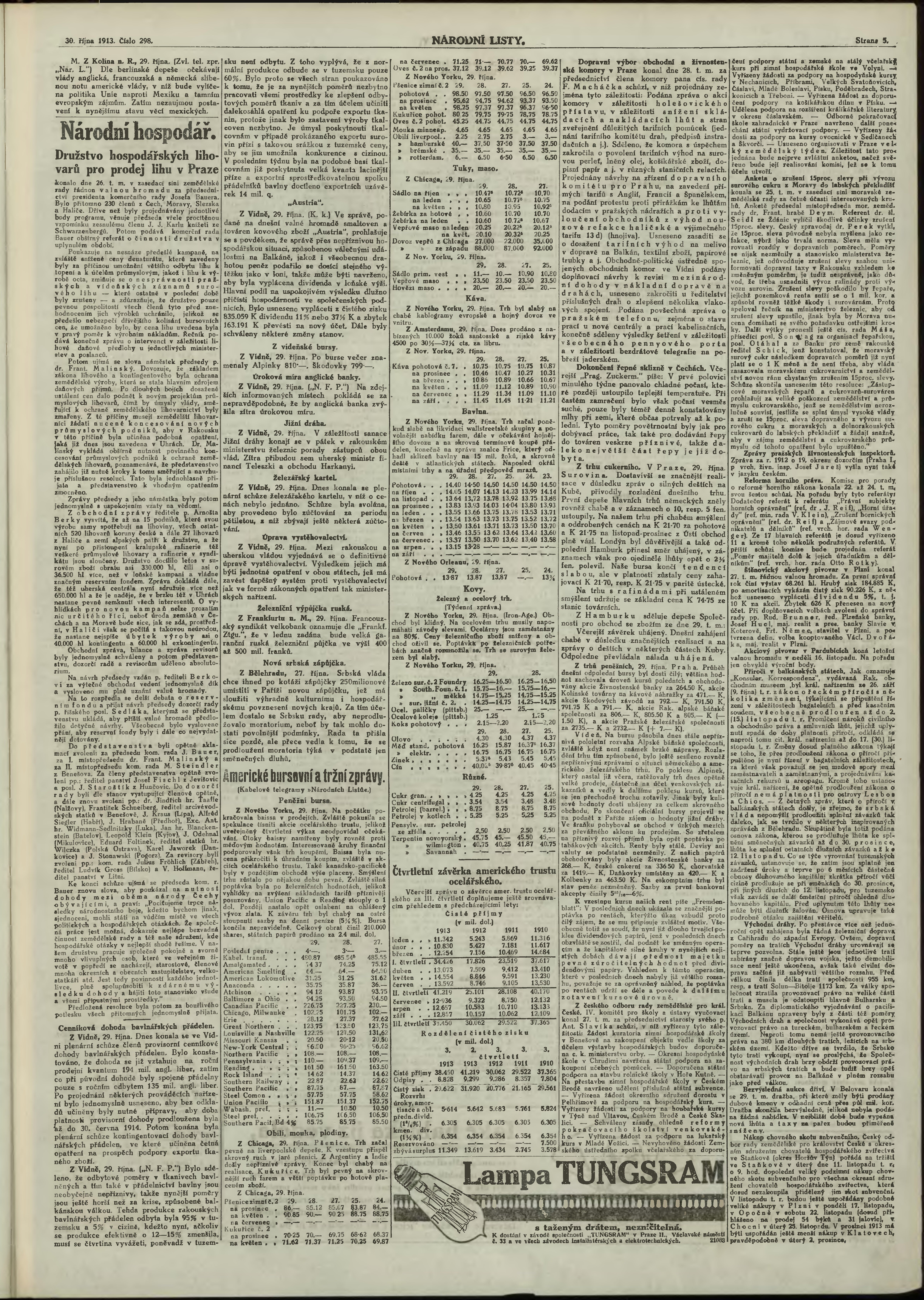 * Datum vydání výtisku: 30.10.1913 Číslo výtisku: 298 Poznámky k výtisku: ranní vydání;