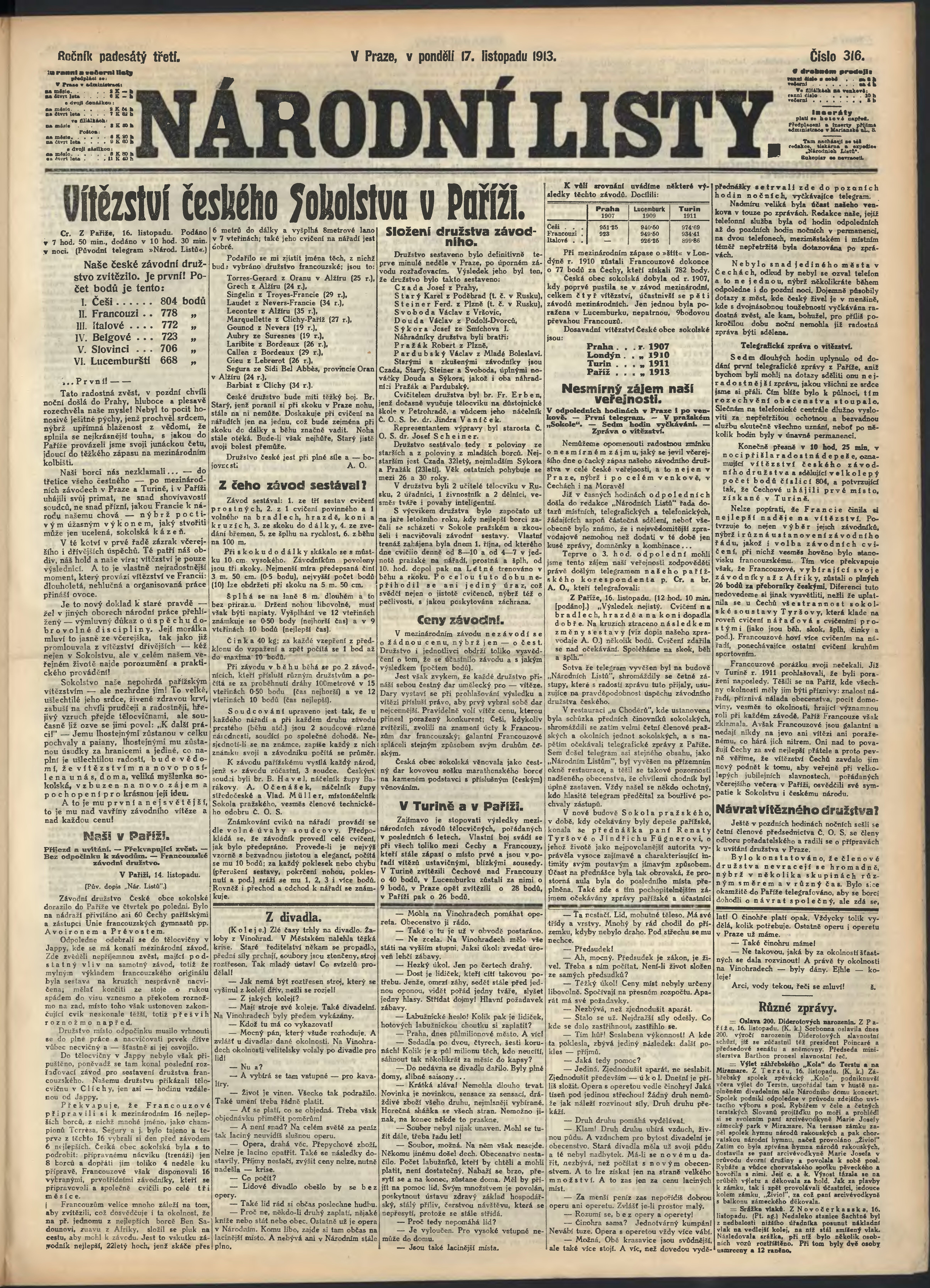 * Datum vydání výtisku: 17.11.1913 Číslo výtisku: 316 Poznámky k výtisku: ranní vydání;