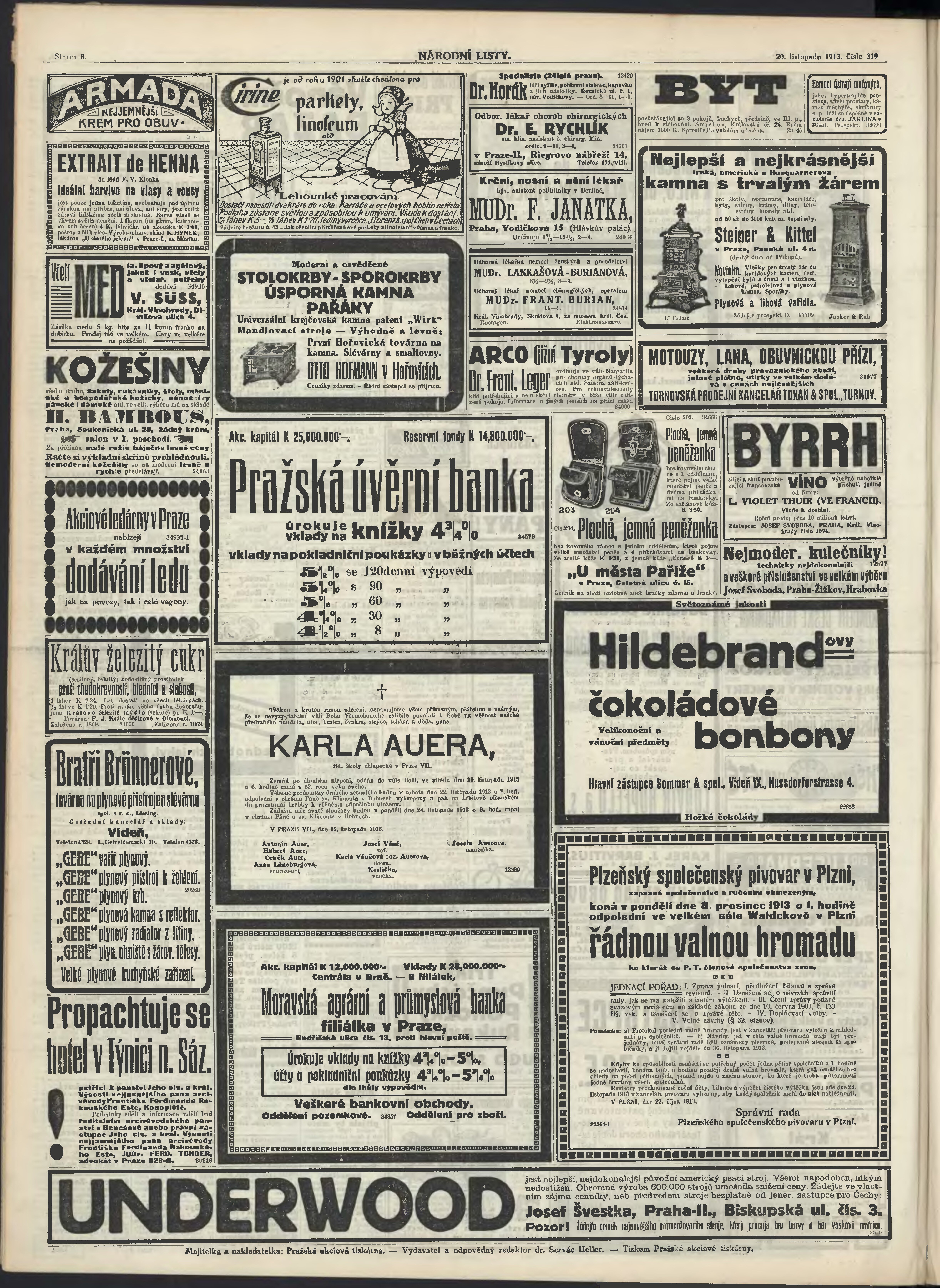 * Datum vydání výtisku: 20.11.1913 Číslo výtisku: 319 Poznámky k výtisku: ranní vydání;