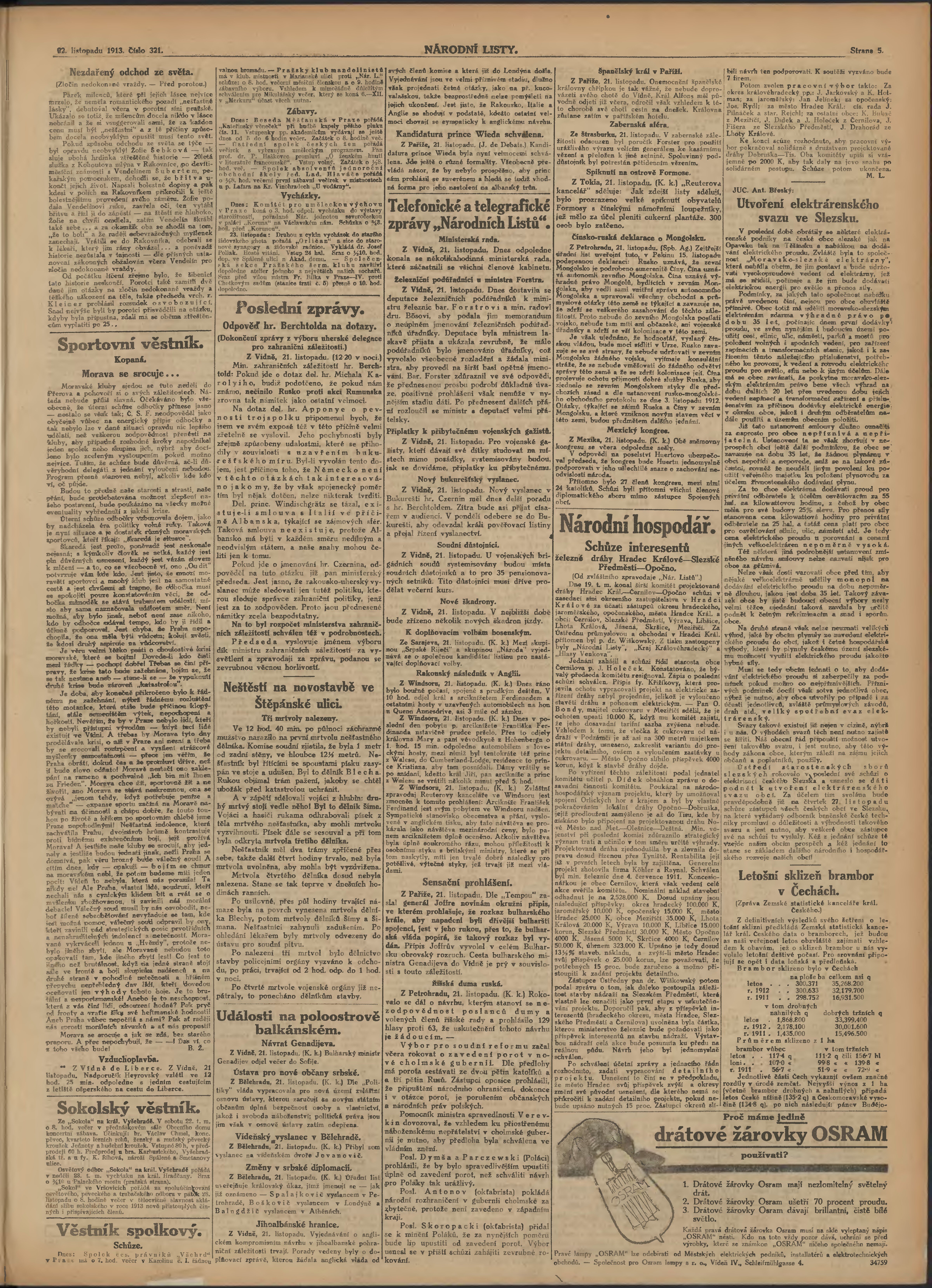 * Datum vydání výtisku: 22.11.1913 Číslo výtisku: 321 Poznámky k výtisku: ranní vydání;