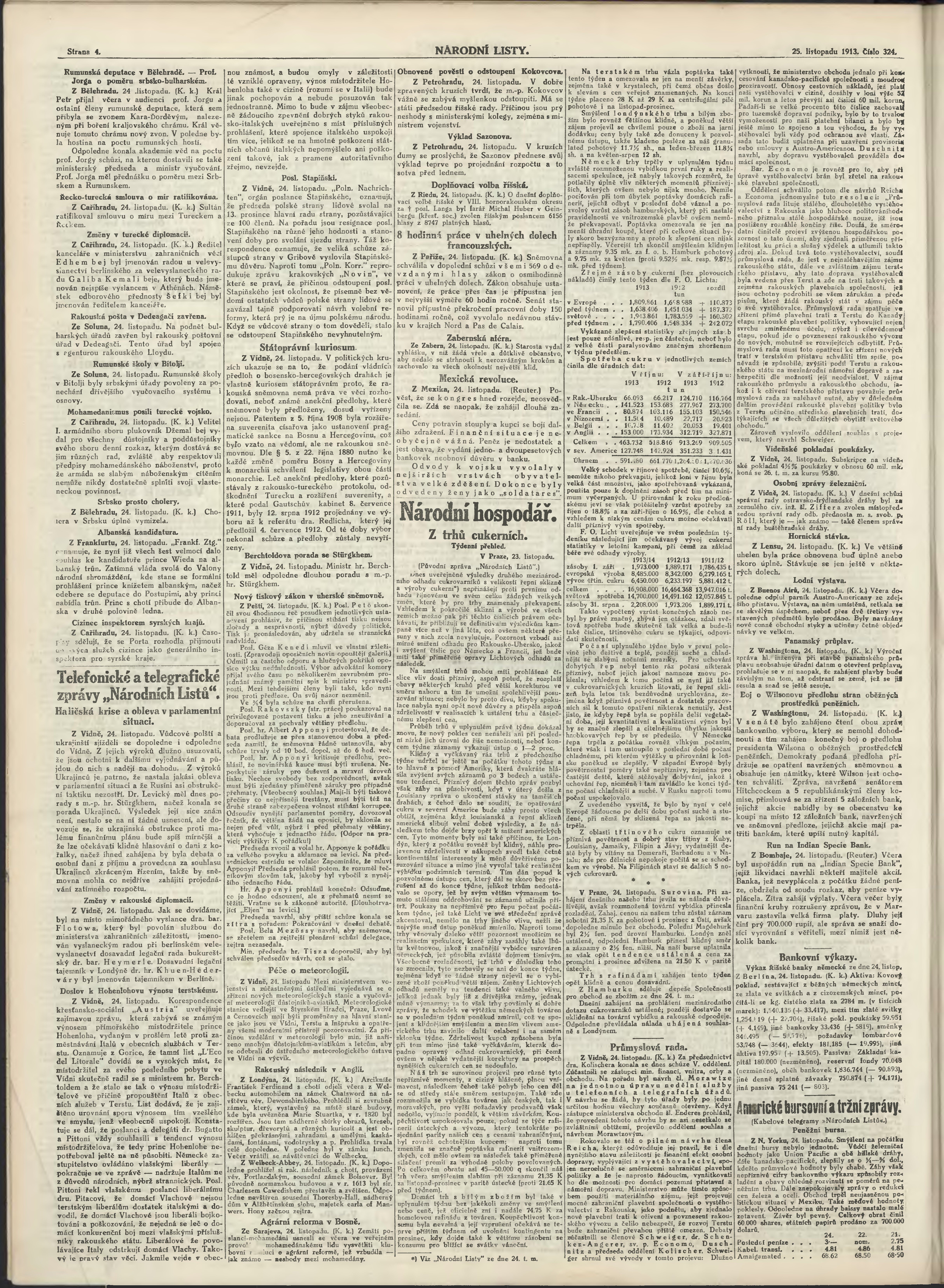 * Datum vydání výtisku: 25.11.1913 Číslo výtisku: 324 Poznámky k výtisku: ranní vydání;