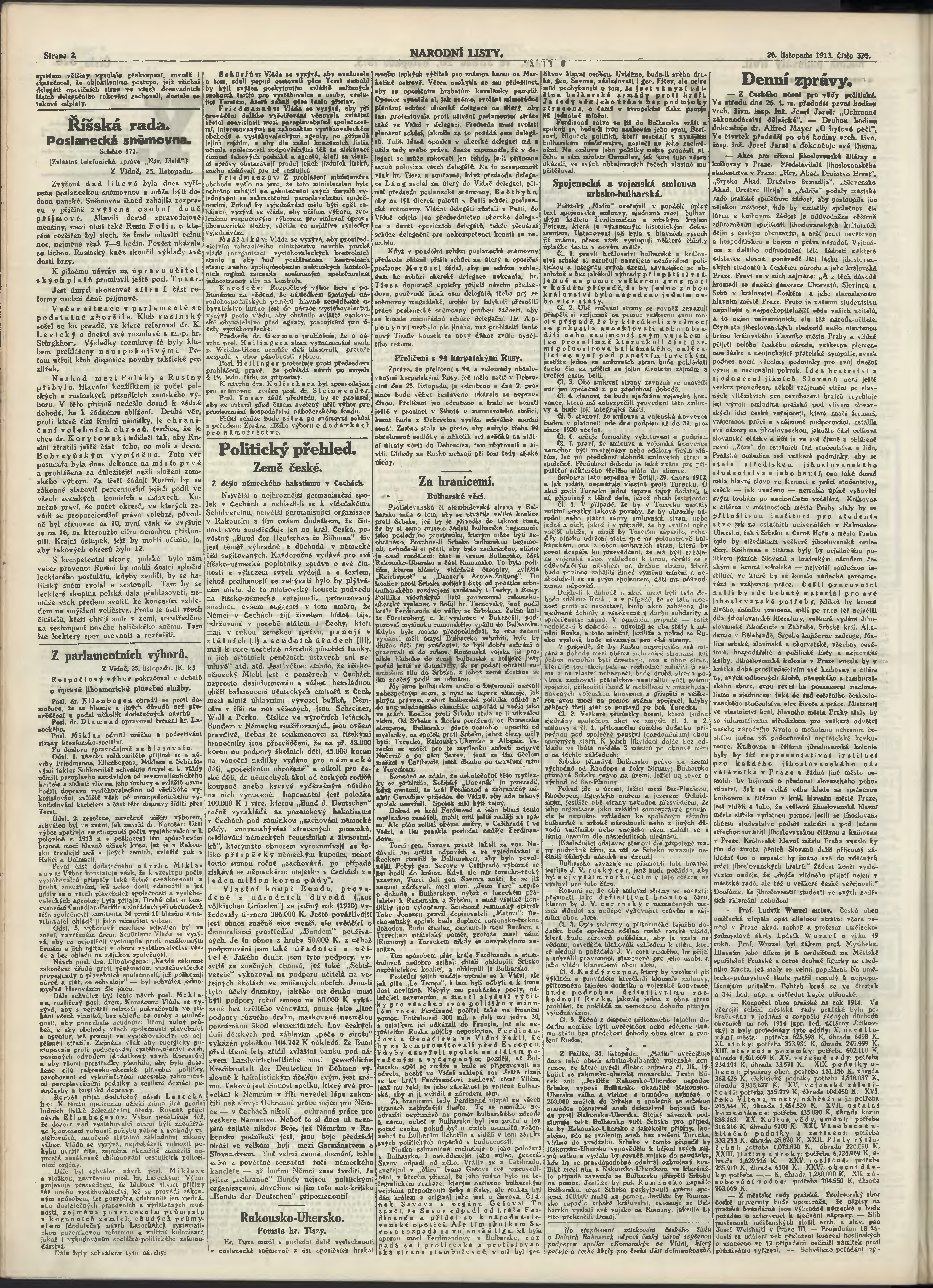 * Datum vydání výtisku: 26.11.1913 Číslo výtisku: 325 Poznámky k výtisku: ranní vydání;
