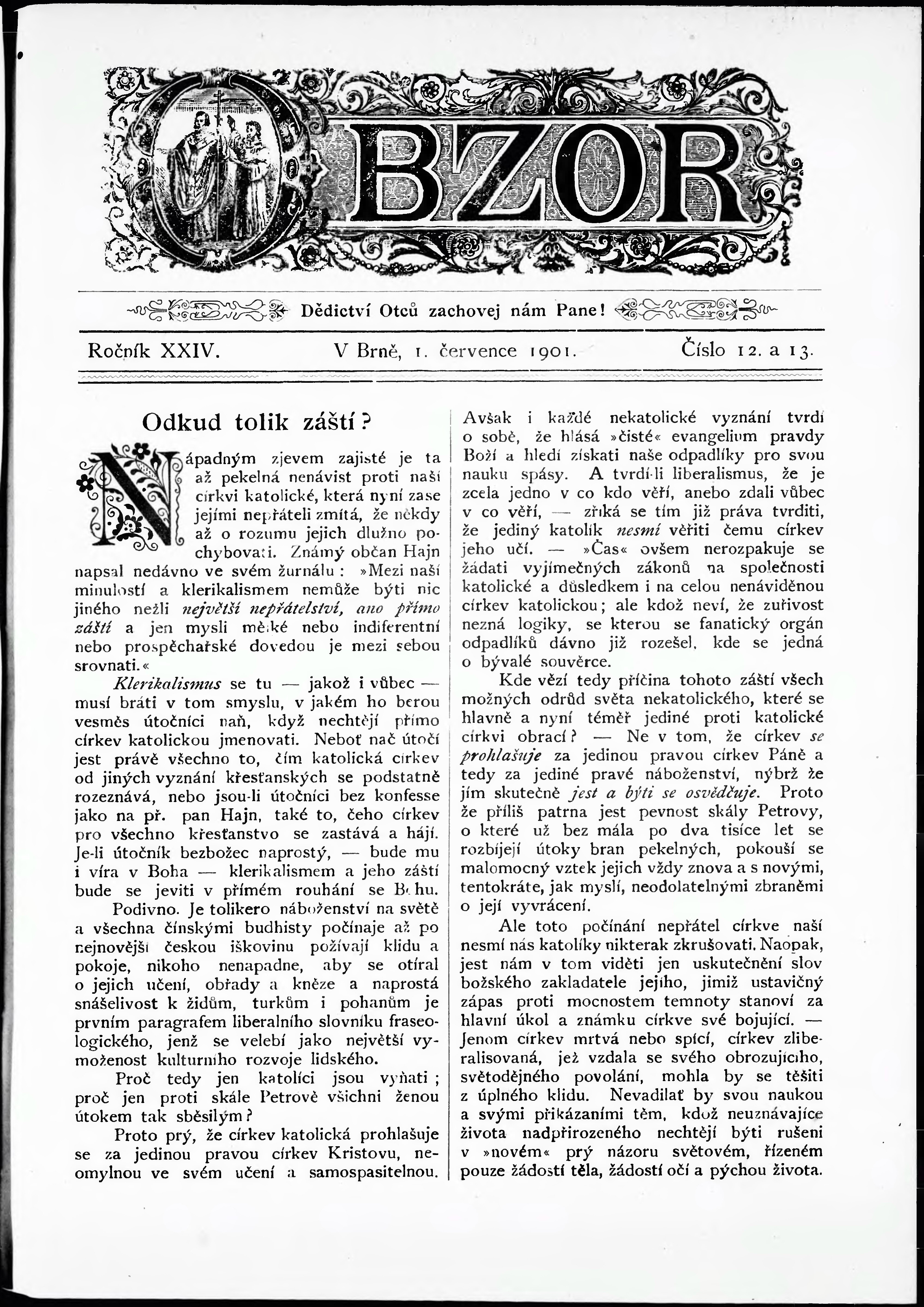 * Datum vydání výtisku: 1.7.1901 Číslo výtisku: 12 - 13