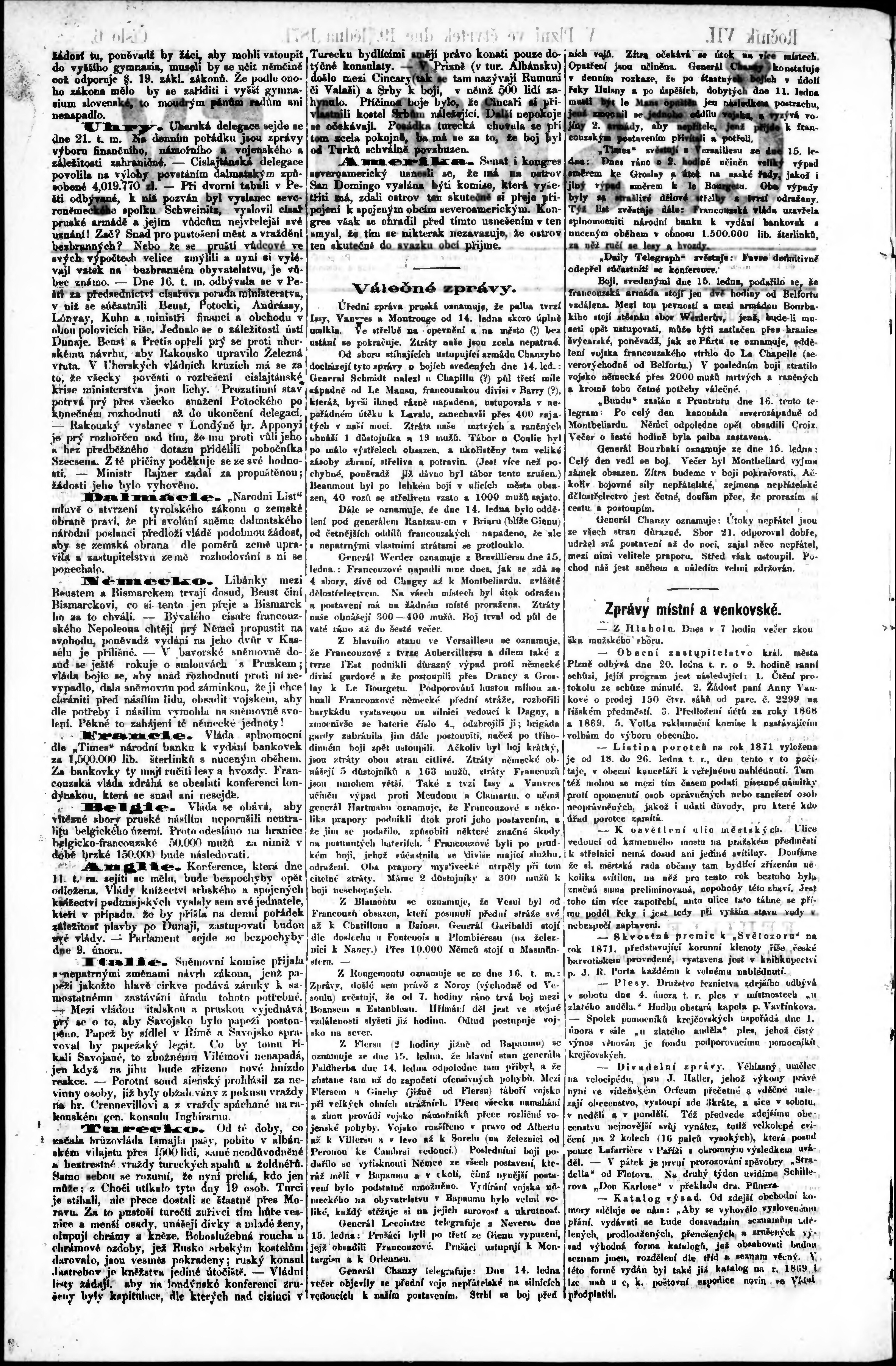 * Datum vydání výtisku: 19.1.1871 Číslo výtisku: 6
