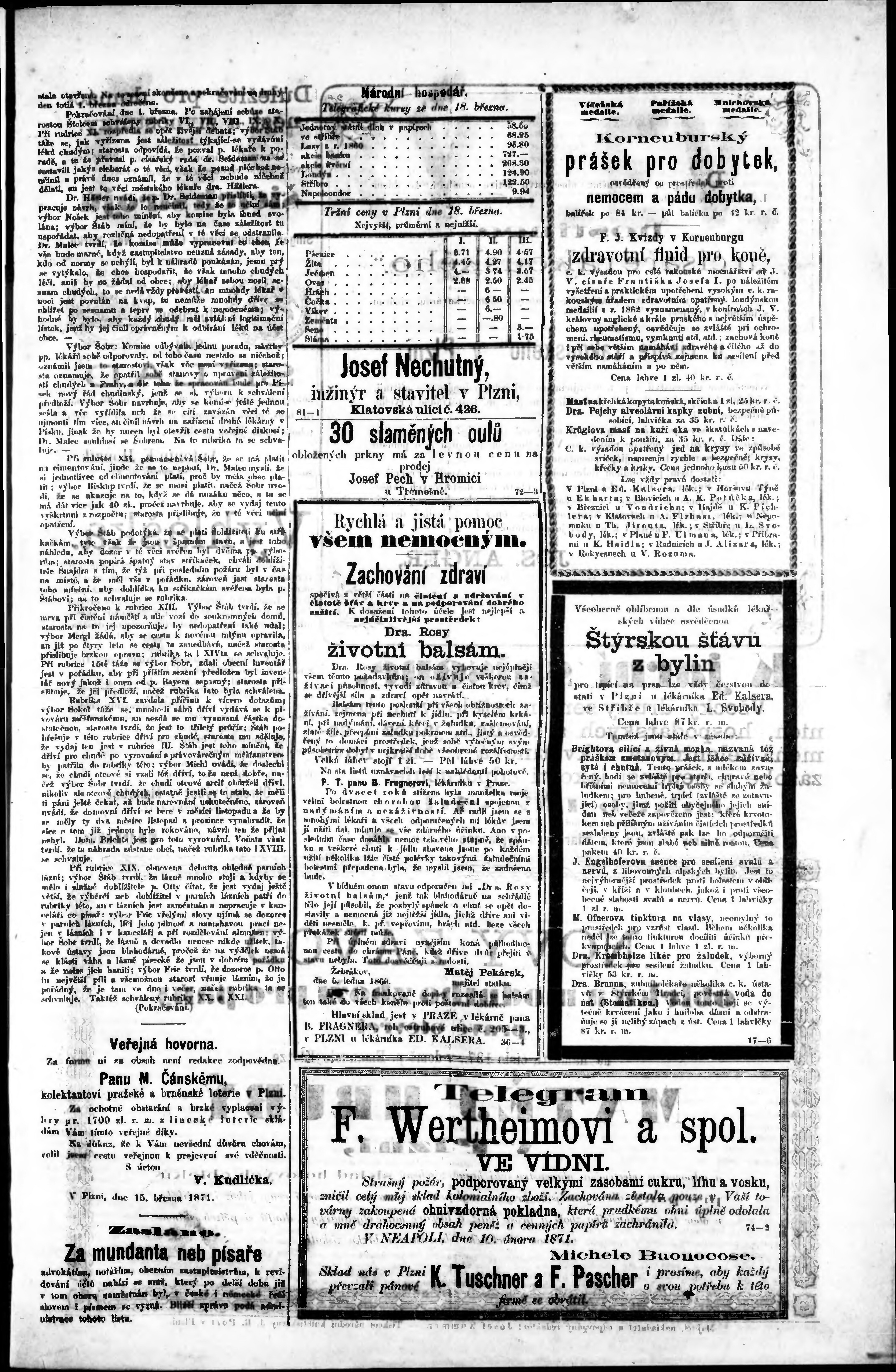 * Datum vydání výtisku: 19.3.1871 Číslo výtisku: 23