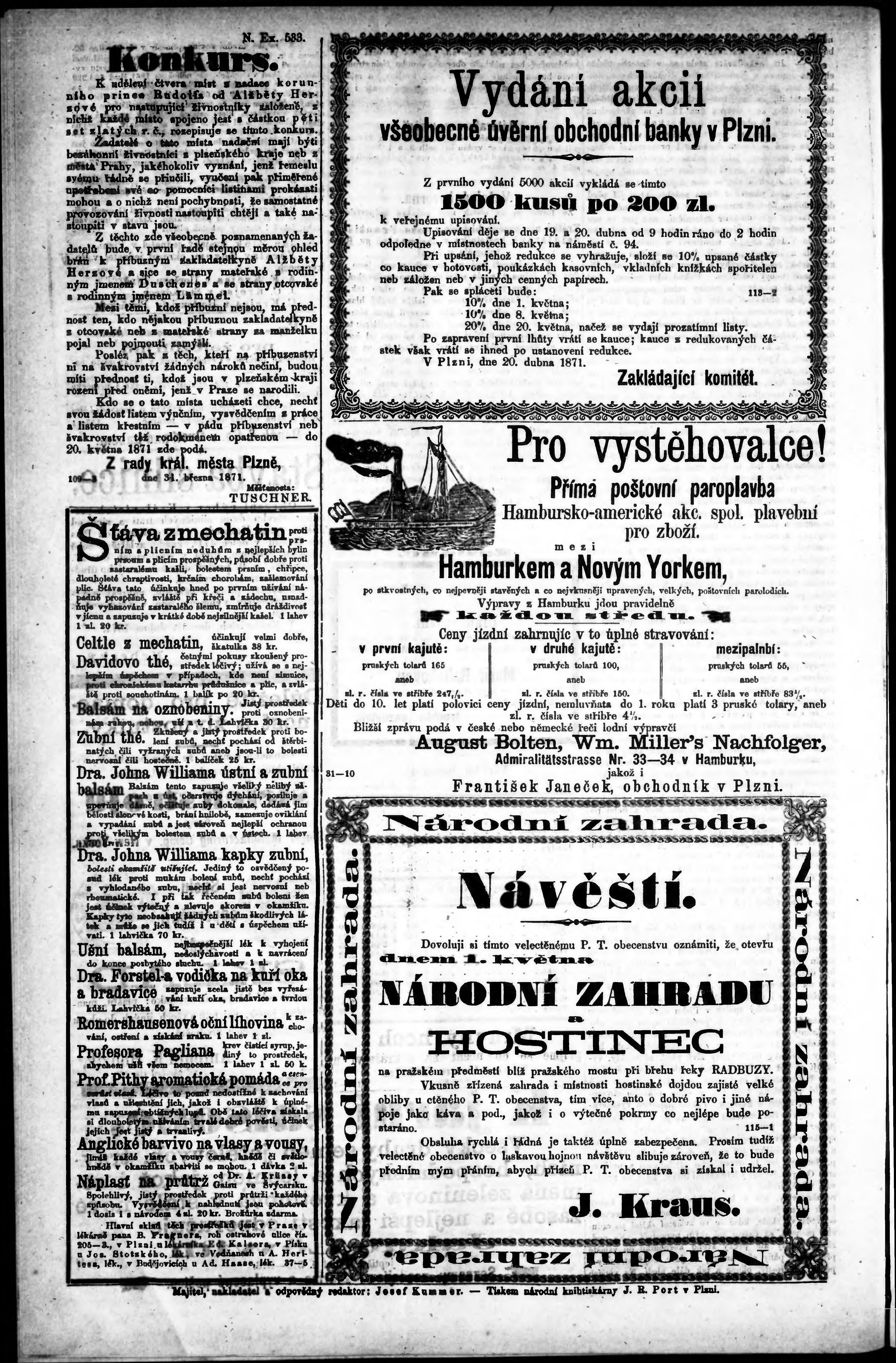 * Datum vydání výtisku: 16.4.1871 Číslo výtisku: 31