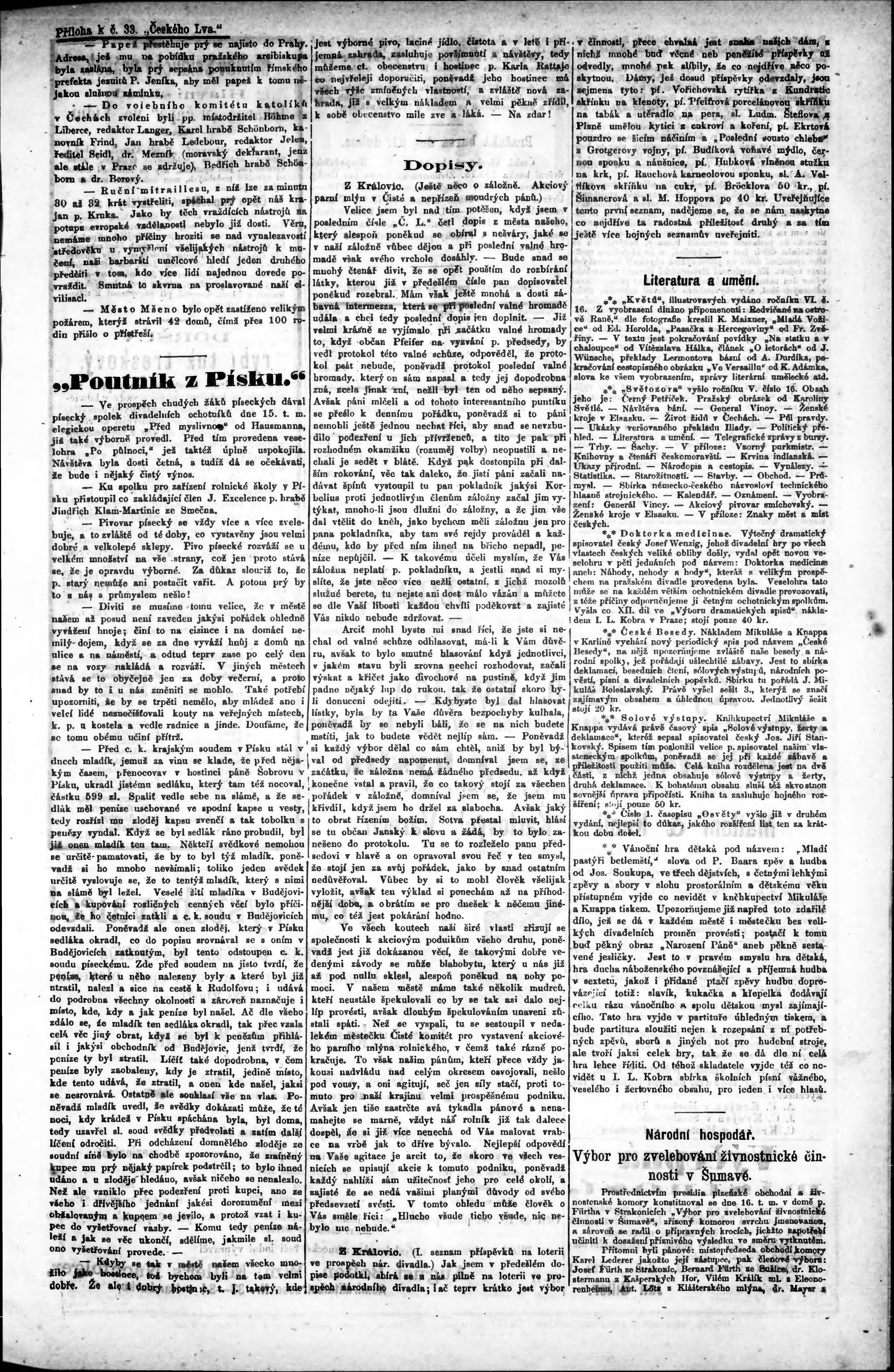 * Datum vydání výtisku: 23.4.1871 Číslo výtisku: 33 Typ výtisku: příloha