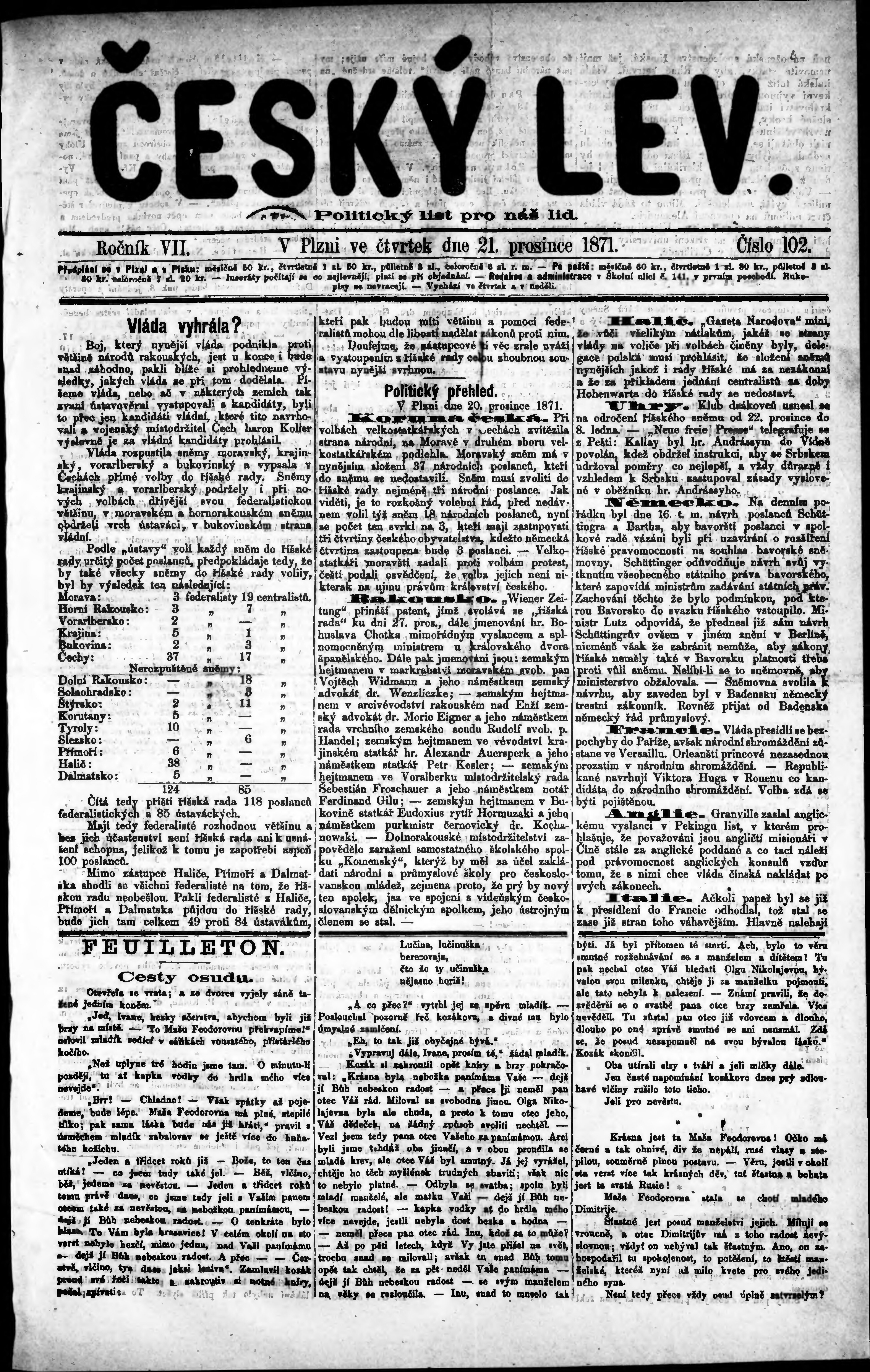 * Datum vydání výtisku: 21.12.1871 Číslo výtisku: 102