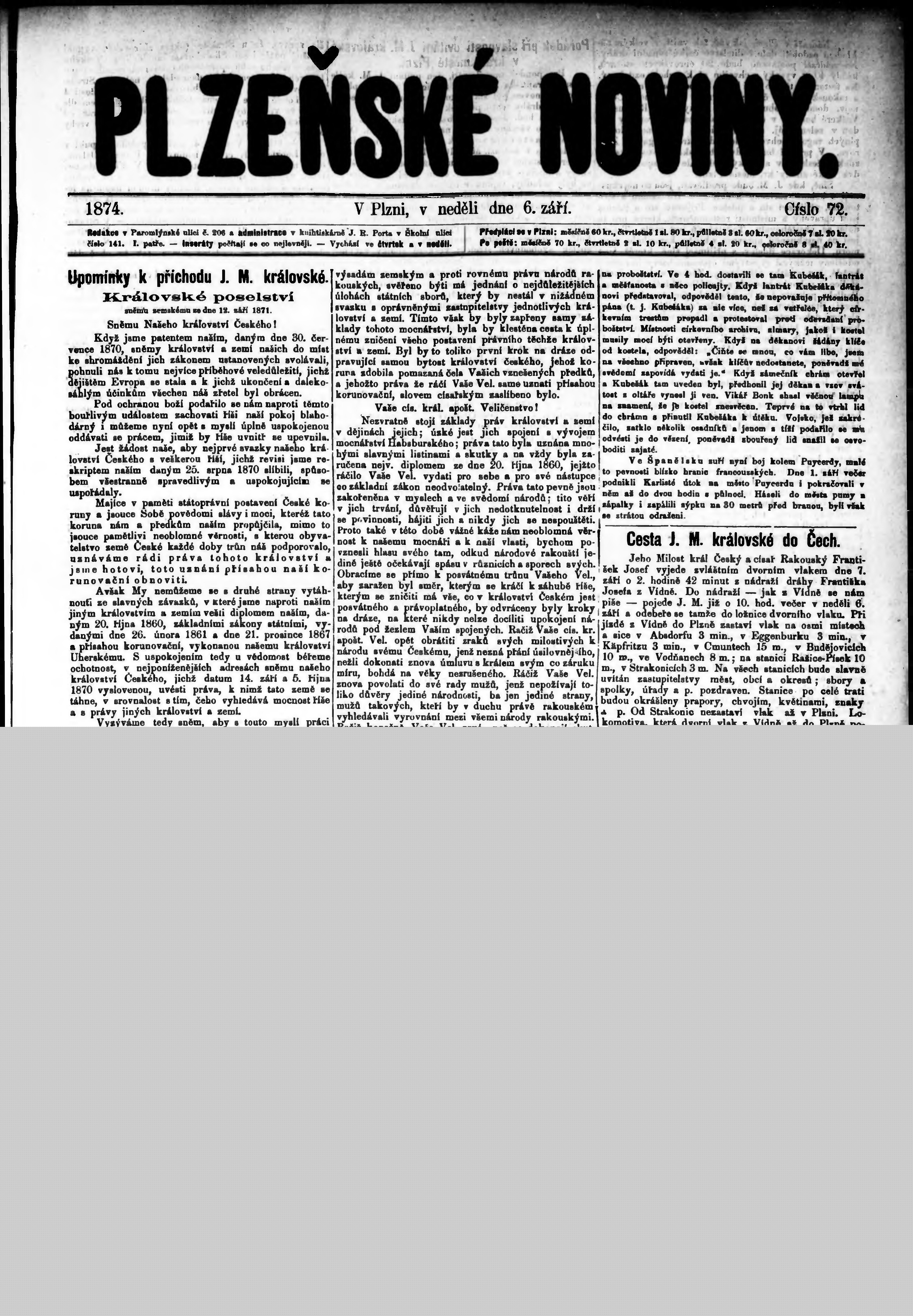* Datum vydání výtisku: 6.9.1874 Číslo výtisku: 72 Poznámky k výtisku: s. (2) - (3) nekvalitní předloha;