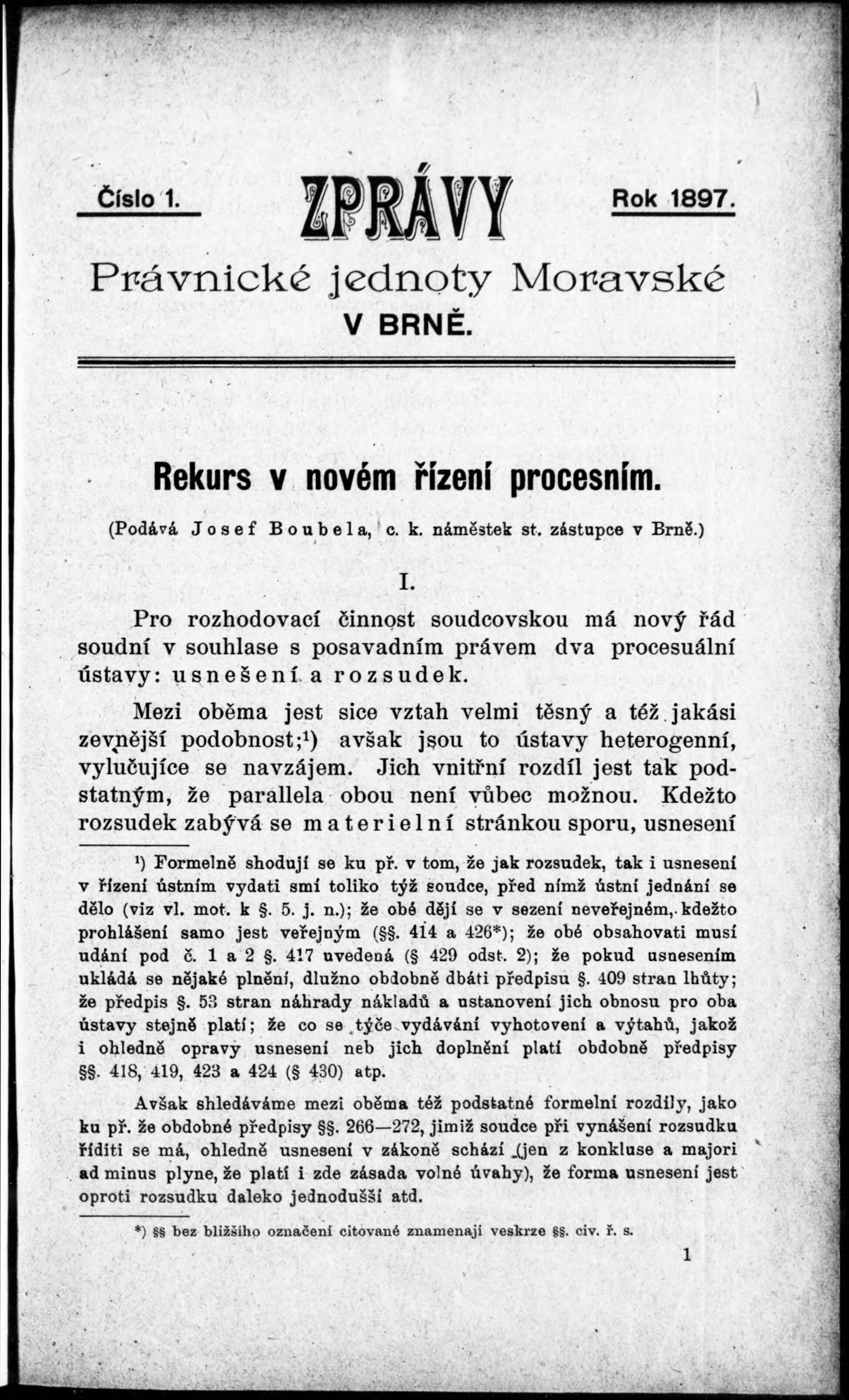 Zprávy Právnické jednoty moravské v Brně