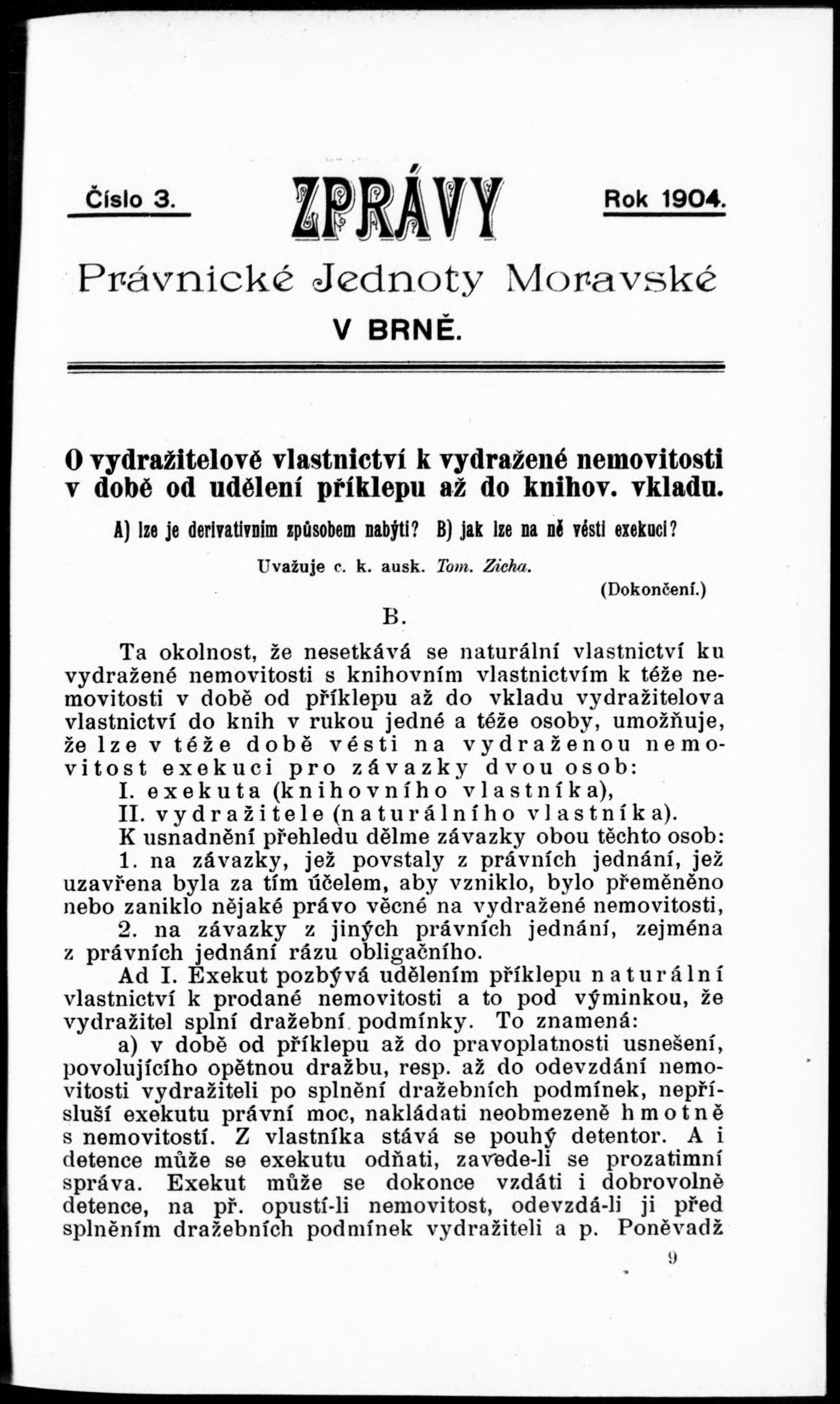 Zprávy Právnické jednoty moravské v Brně