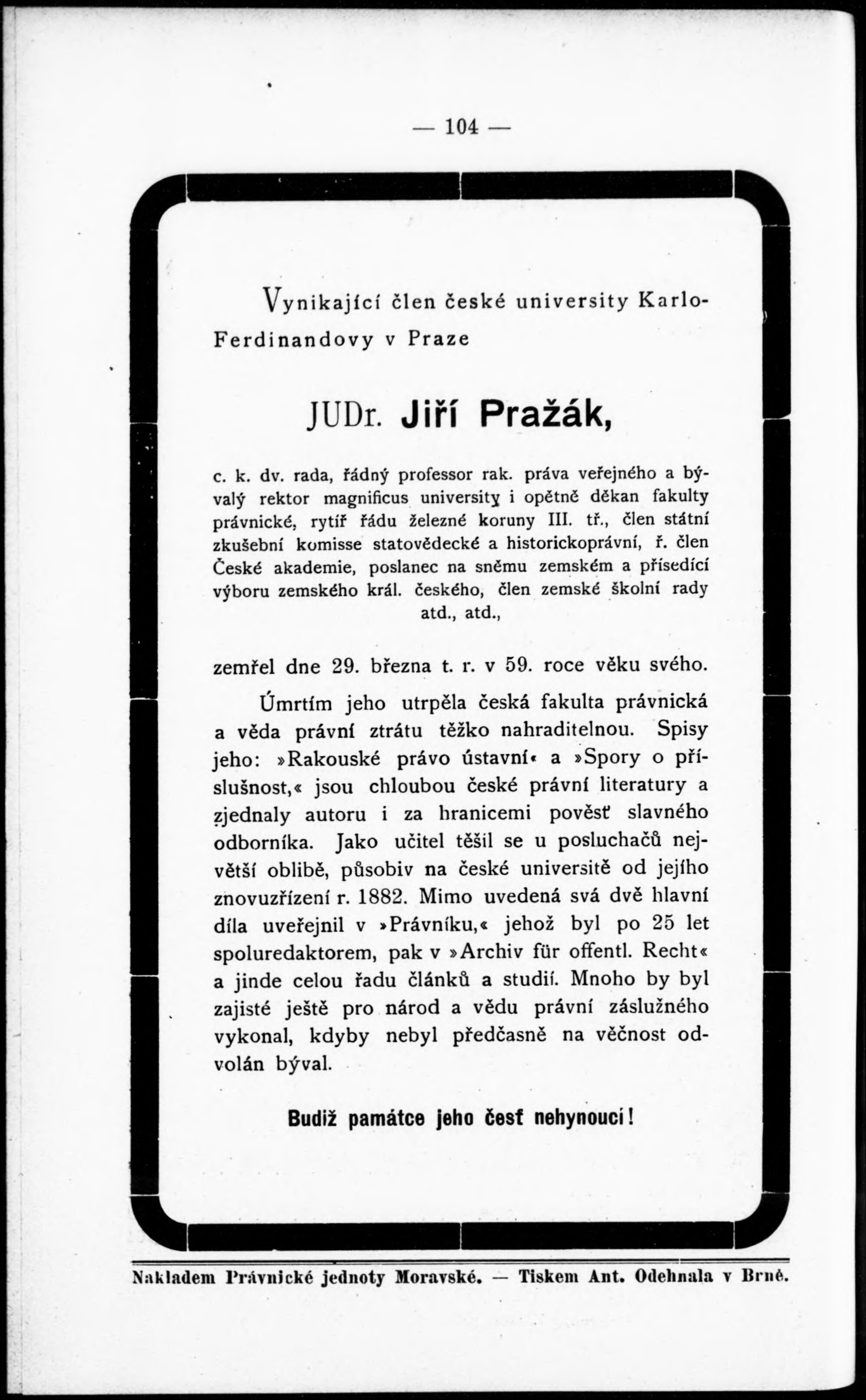Zprávy Právnické jednoty moravské v Brně