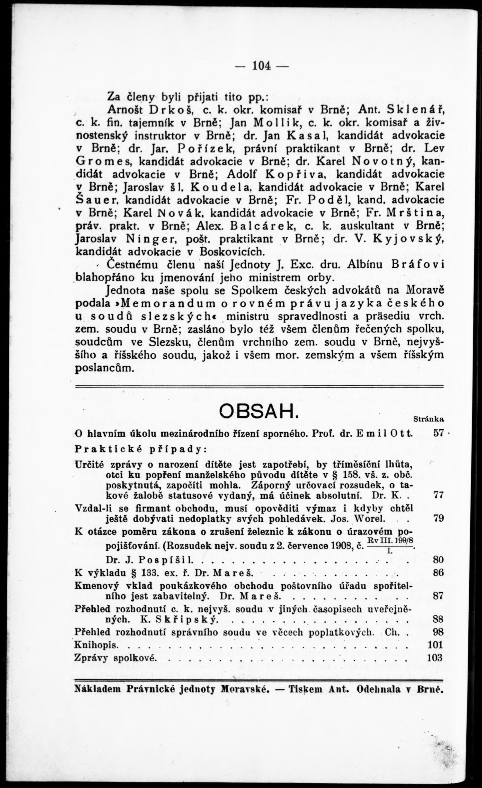 Zprávy Právnické jednoty moravské v Brně