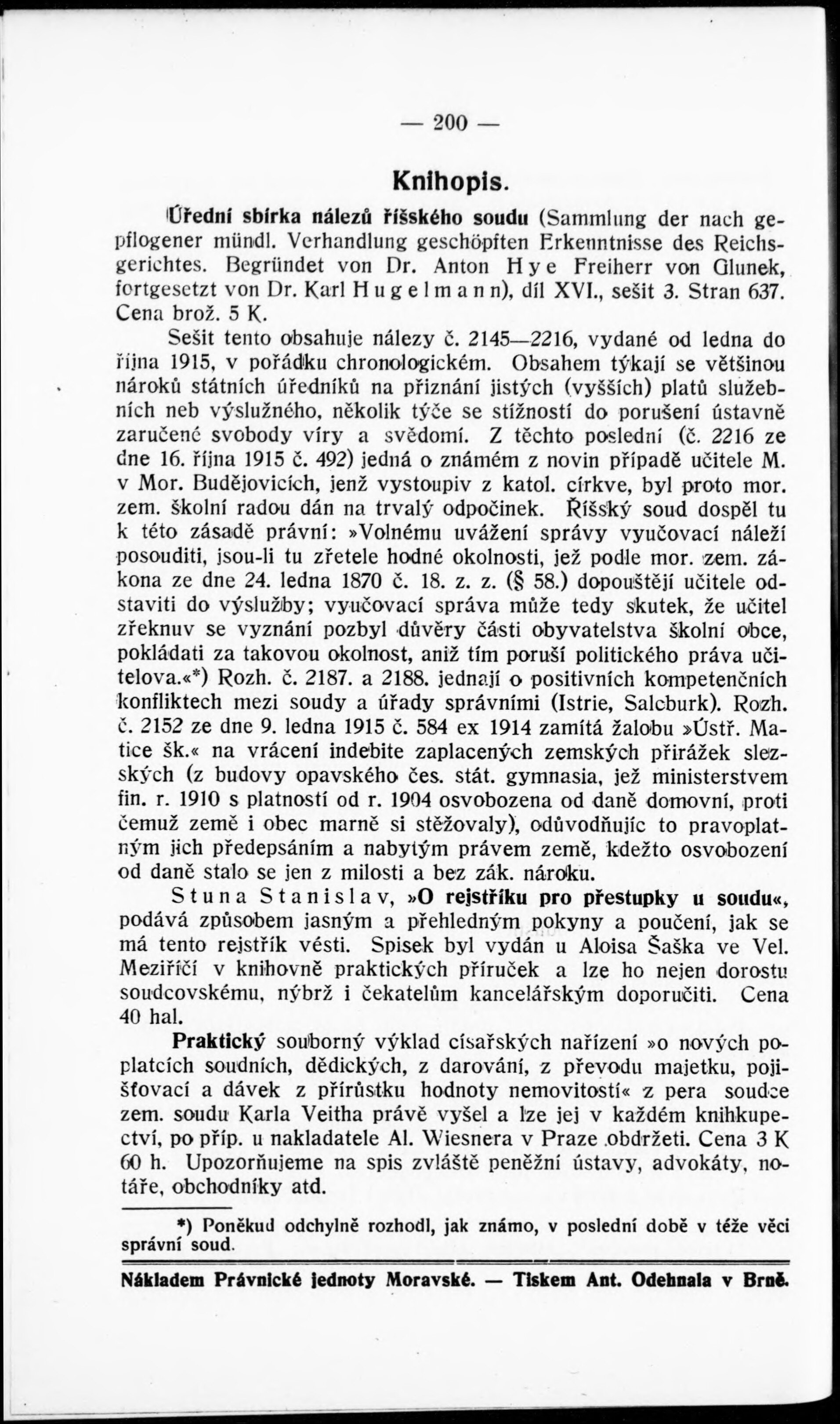 Zprávy Právnické jednoty moravské v Brně