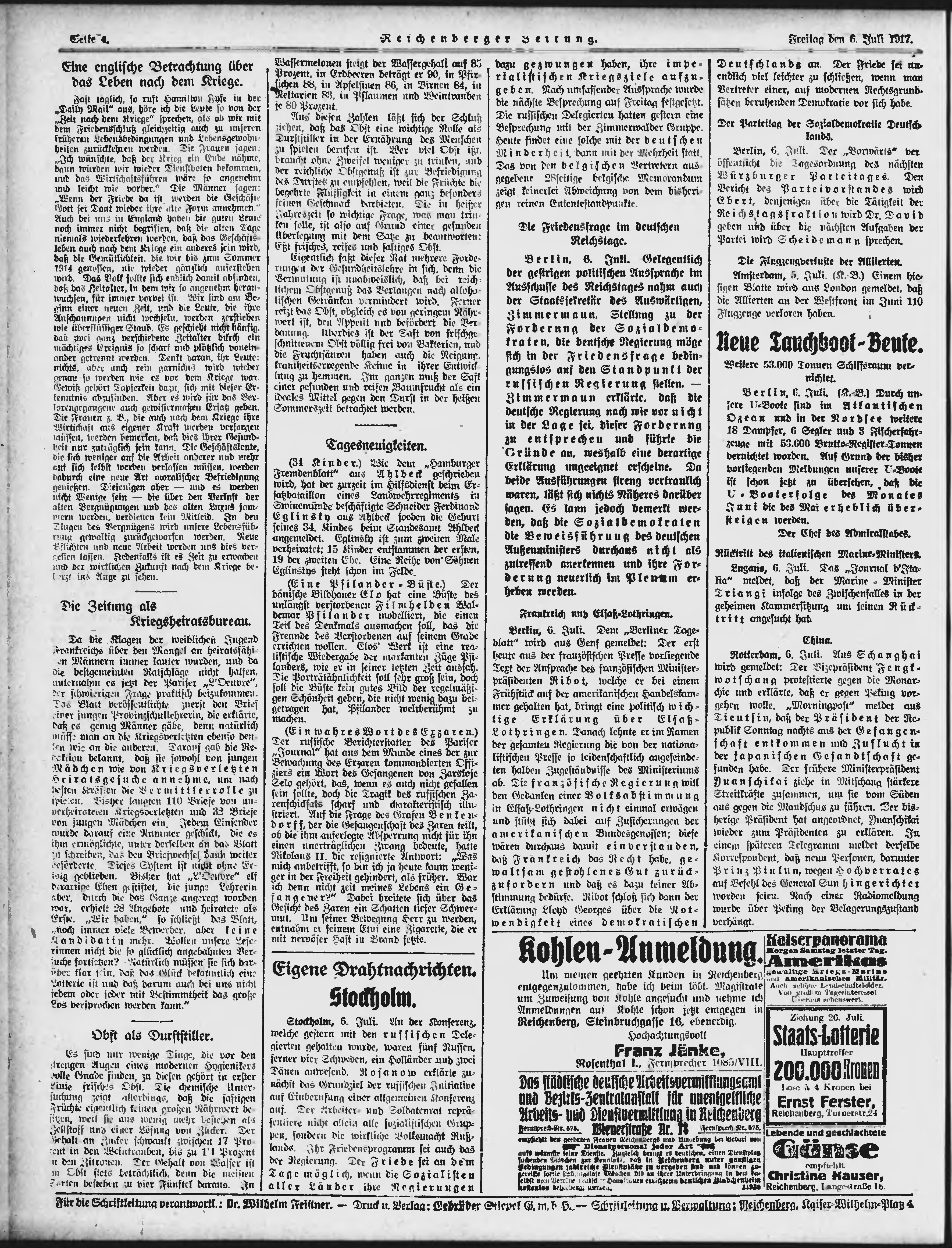* Datum vydání výtisku: 6.7.1917 Číslo výtisku: 161 Typ výtisku: příloha Poznámky k výtisku: večerní vydání;