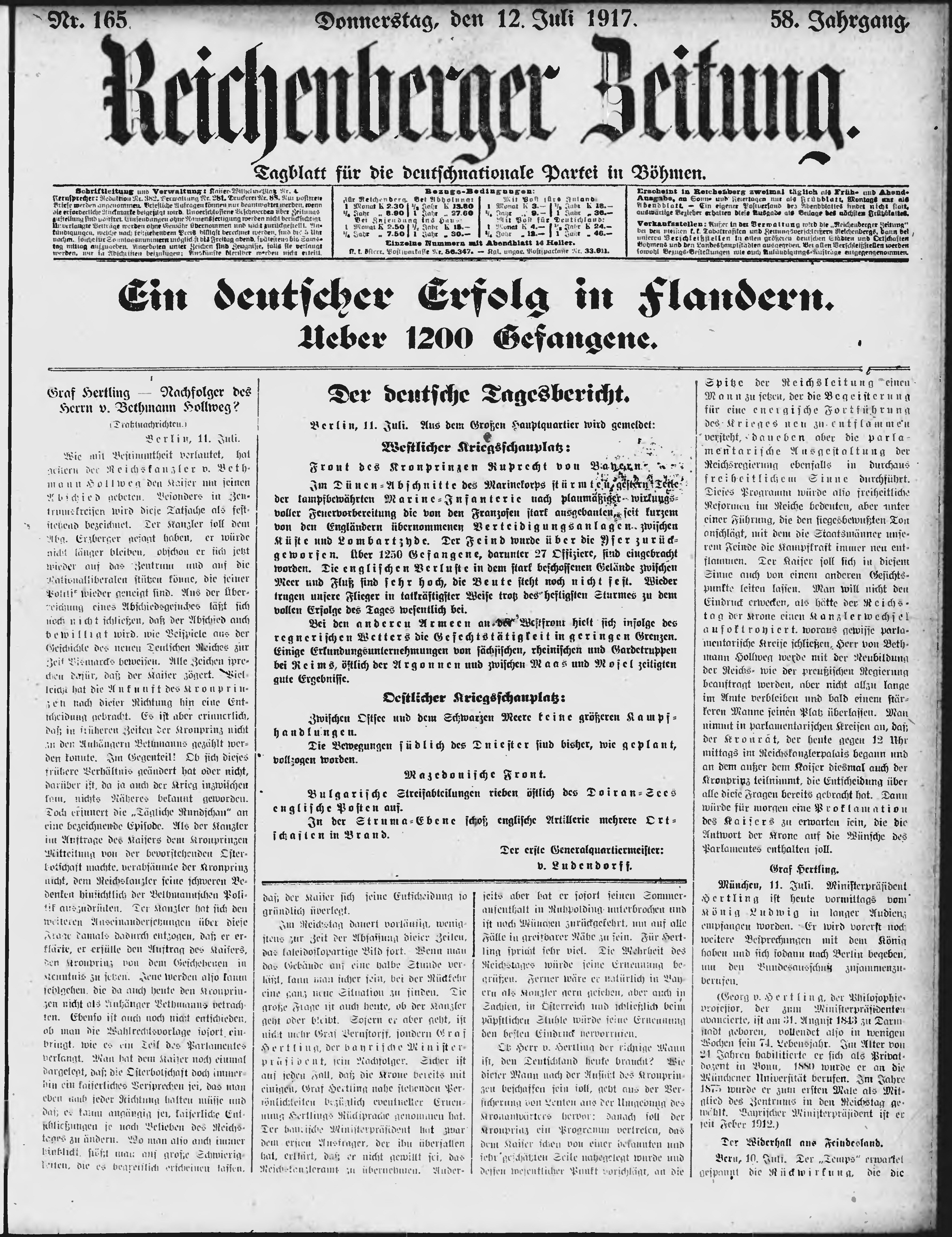 * Datum vydání výtisku: 12.7.1917 Číslo výtisku: 165 Poznámky k výtisku: ranní vydání;