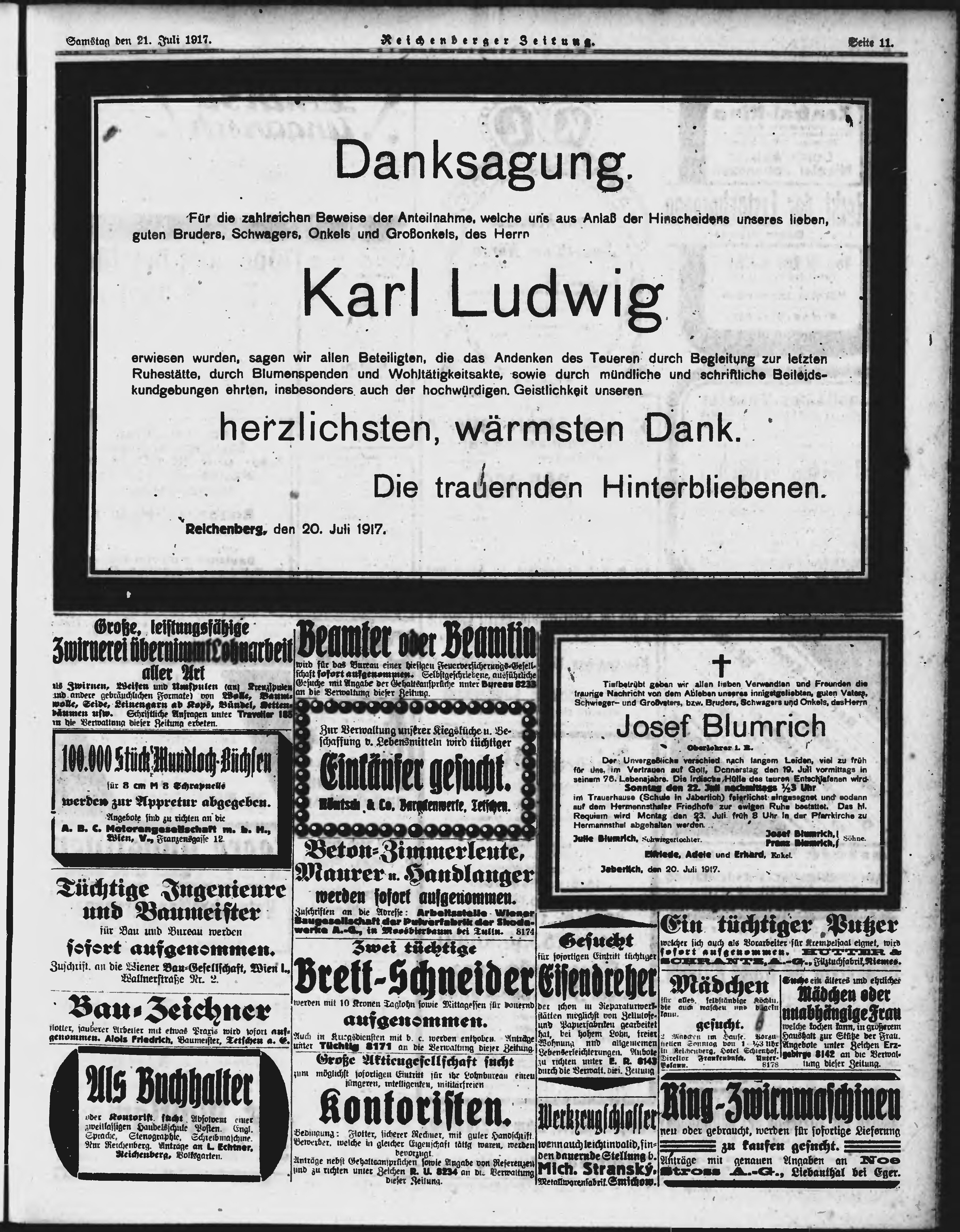 * Datum vydání výtisku: 21.7.1917 Číslo výtisku: 173 Poznámky k výtisku: ranní vydání;
