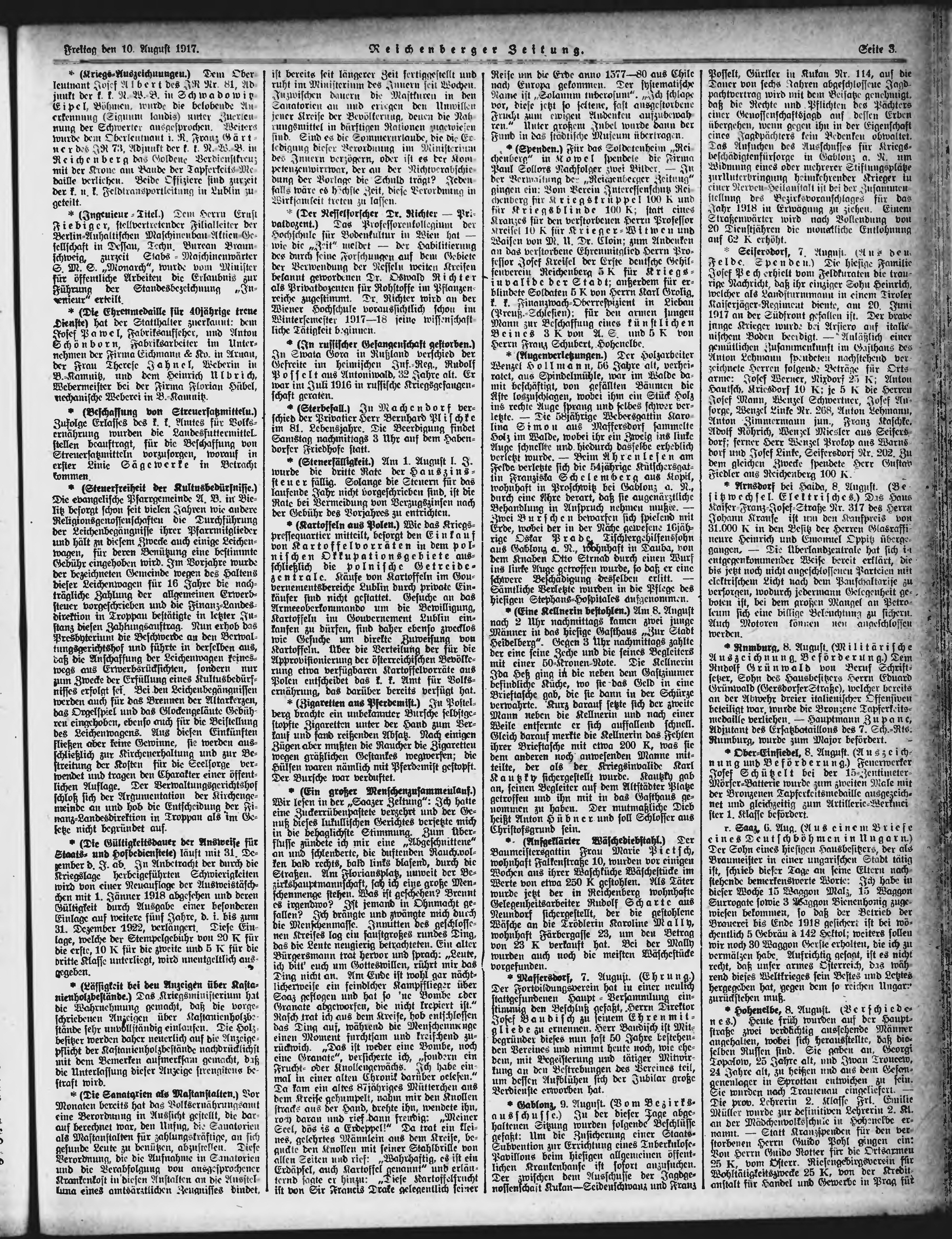 * Datum vydání výtisku: 10.8.1917 Číslo výtisku: 190 Poznámky k výtisku: ranní vydání;