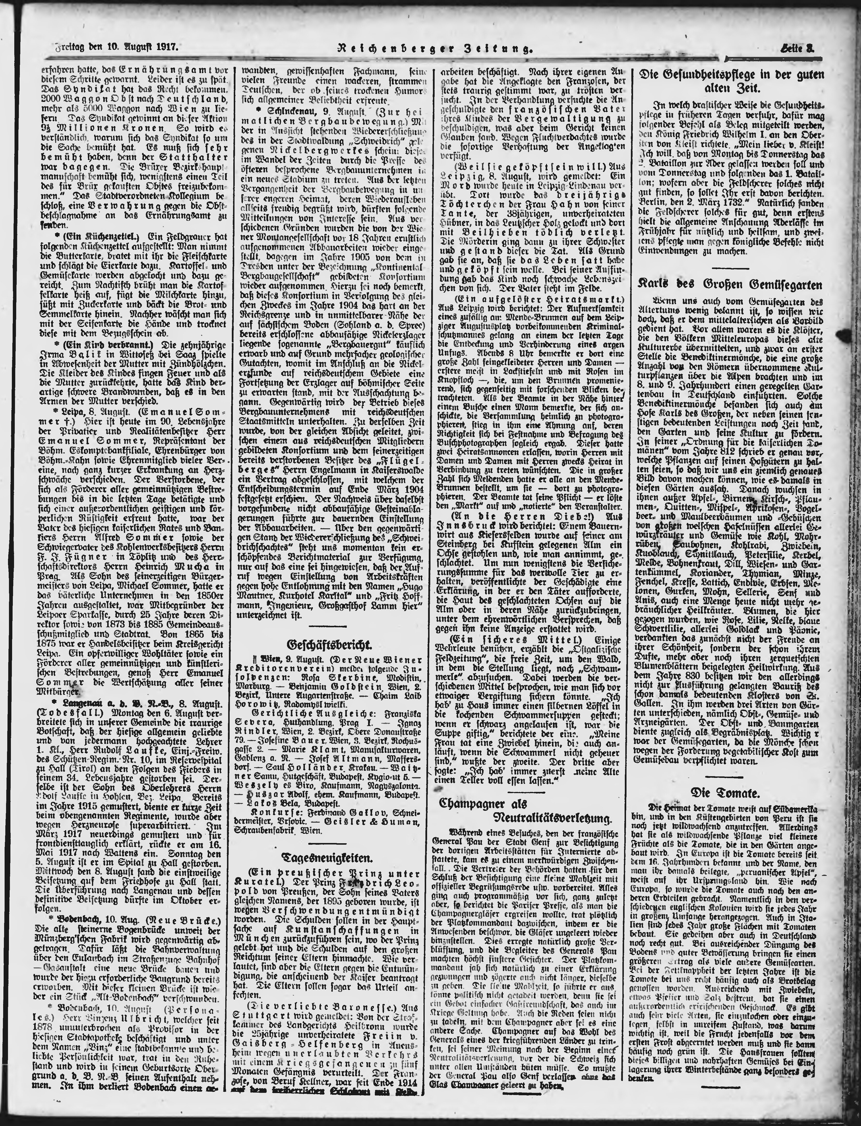 * Datum vydání výtisku: 10.8.1917 Číslo výtisku: 191 Typ výtisku: příloha Poznámky k výtisku: večerní vydání;